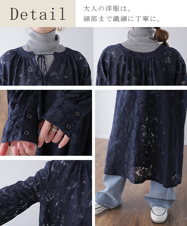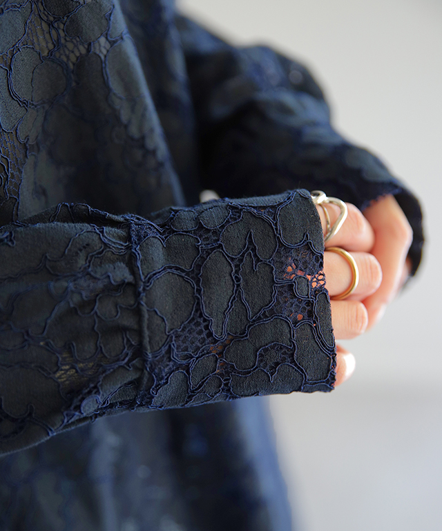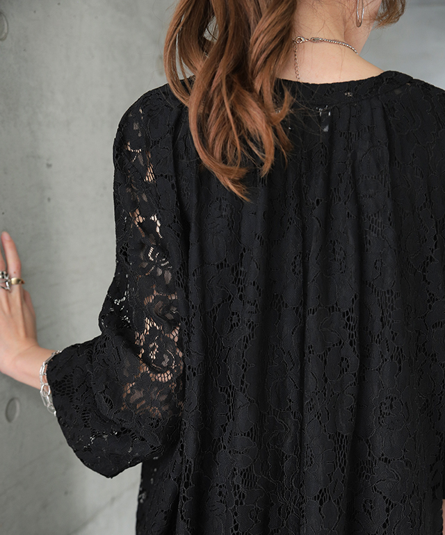 インナー色とのコントラストや肌魅せなど、花柄総レースの透け感を楽しめる1枚に。
