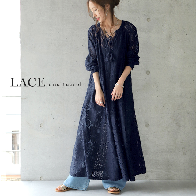 Aラインワンピース Aラインワンピ Aライン 花柄 花柄レース マキシ丈ワンピース マキシ丈 フレアワンピース フレアワンピ フレア ビッグシルエット ビッグ ビック ビックシルエット フリンジ タッセル Vネック 丸首 U字ネック オーバーサイズ オーバー ゆる ゆったり 20代 30代 40代 50代 おしゃれ 母の日 お洒落 オシャレ かわいい 可愛い カワイイ 上品 透け シースルー 春夏 春 夏 秋 冬 秋冬 紺 紺色 黒 黒色 フリーサイズ M L XL XXL 2L 3L HUG.U HUGU ハグユー はぐゆー