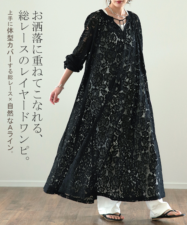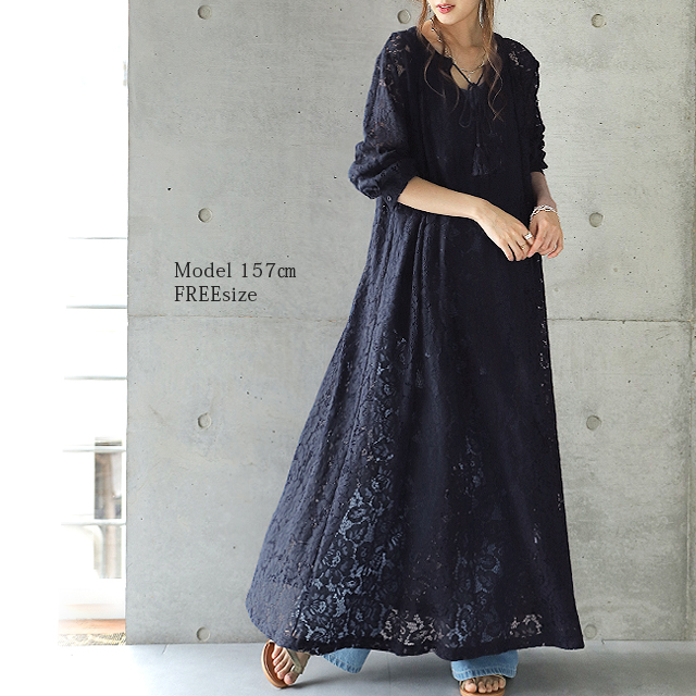 夏セール ロングワンピース ワンピース レディース レイヤード ロング ロングワンピ 重ね着 総レース マキシワンピース マキシワンピ 大きいサイズ 花柄 Aライン 重ね着 シースルー シアー 透け シアーワンピース 長袖 冬 秋 秋新作