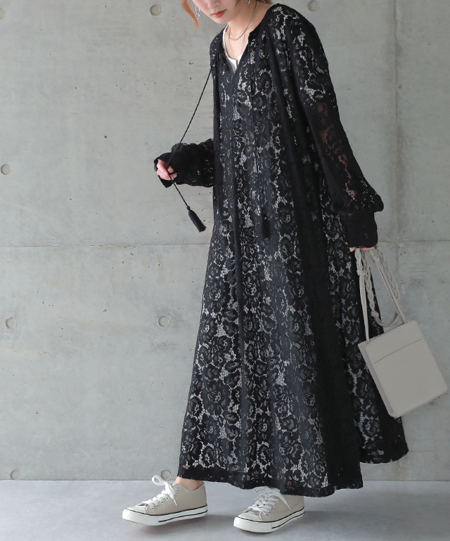 - ともかくレースの服が好きだ。 全体がレースのドレスは、結婚式以来。黒を重ねれば、冠婚葬祭にもいけそう。 襟元が少し、カジュアルだけどそこら辺は、アクセサリーでなんとかするとして 中は、黒のタンク、黒の...