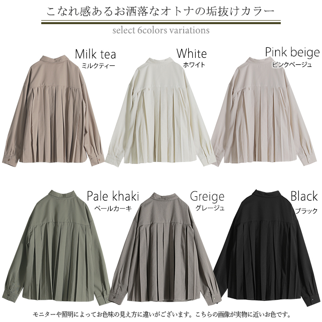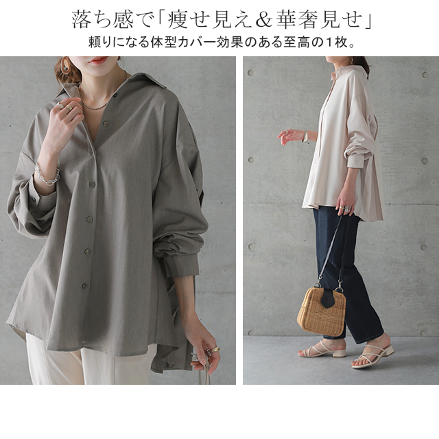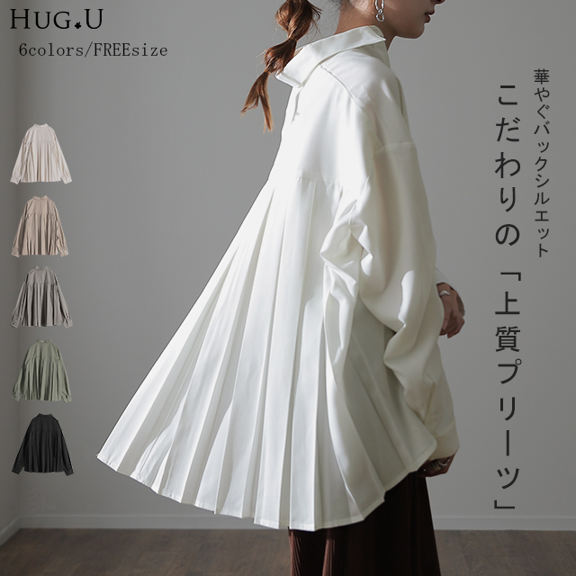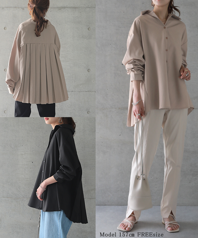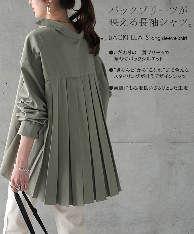 視線を奪う、大人シンプルなバックプリーツシャツ トップス レディース チュニック ブラウス 一部12月下旬入荷 羽織 長袖 大きいサイズ 体型カバー お尻が隠れる 冬 秋 秋新作