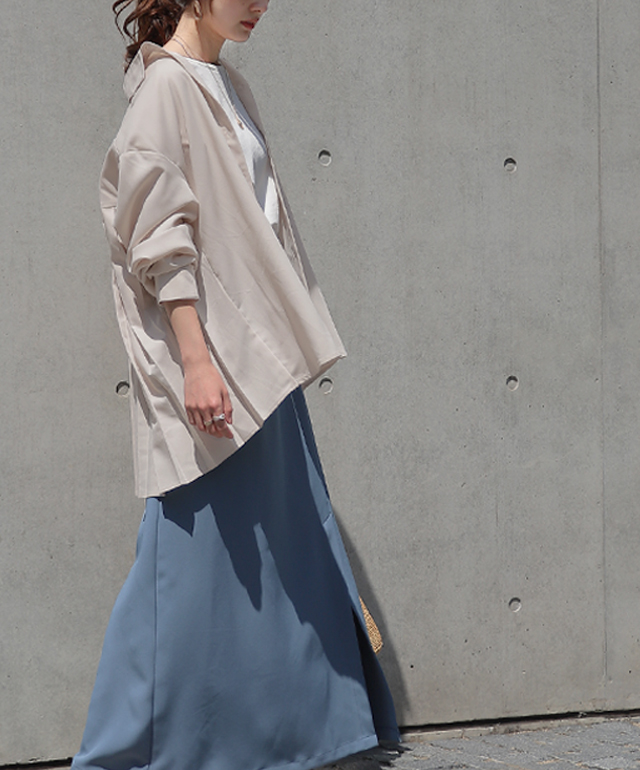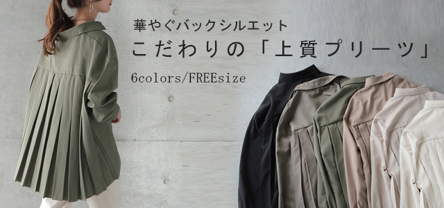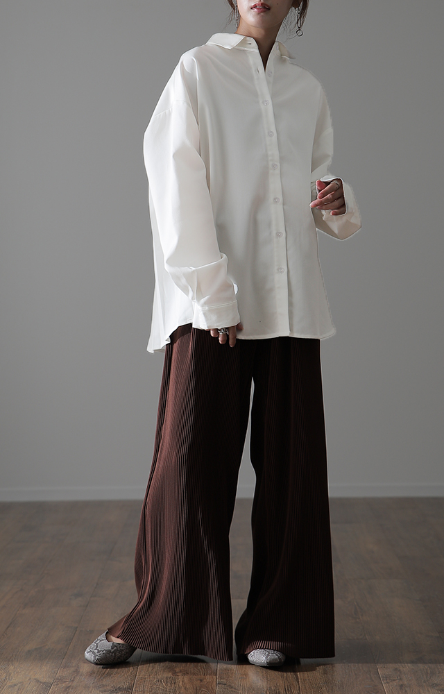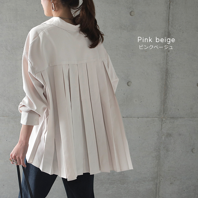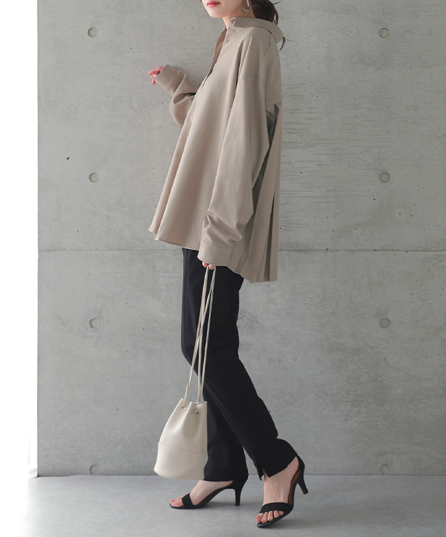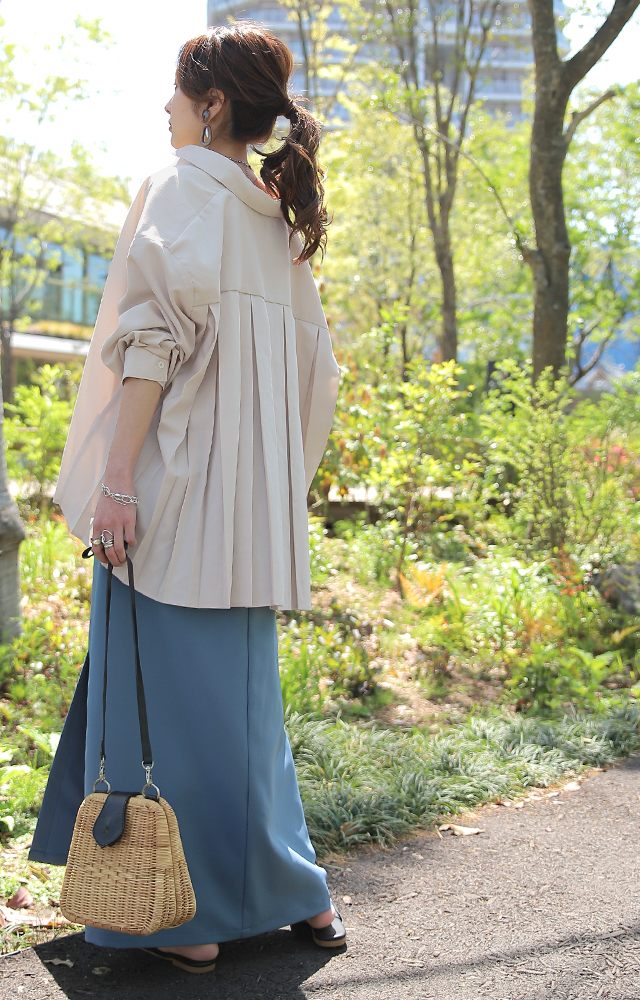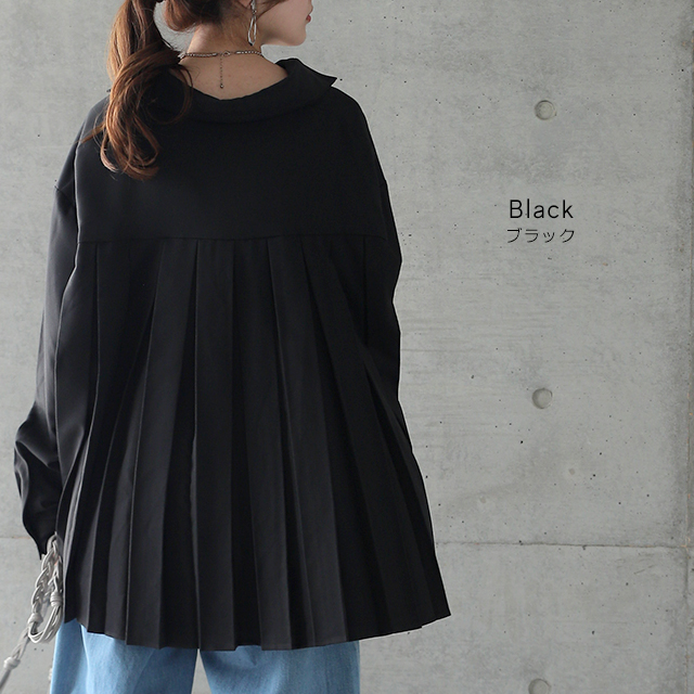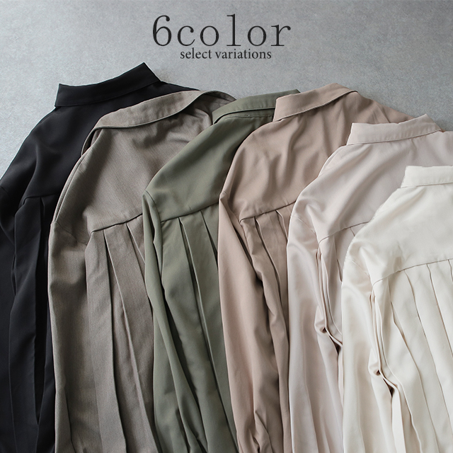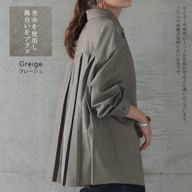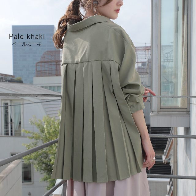バックヨーク下をプリーツ加工したフレアシルエットのシャツ。