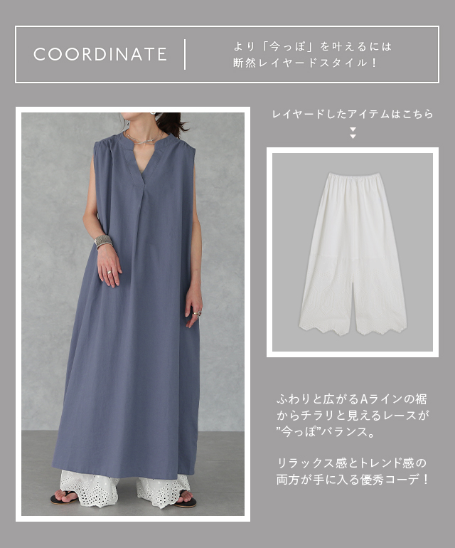Vネック&ノースリーブで着こなす大人のリラックスワンピース。