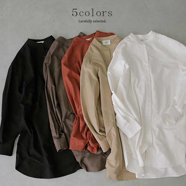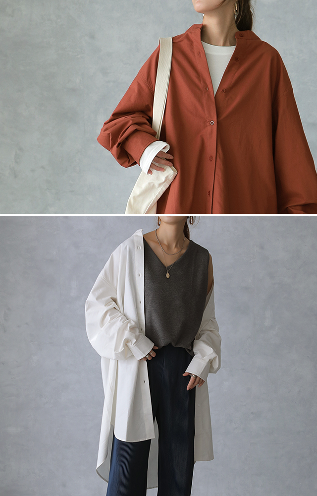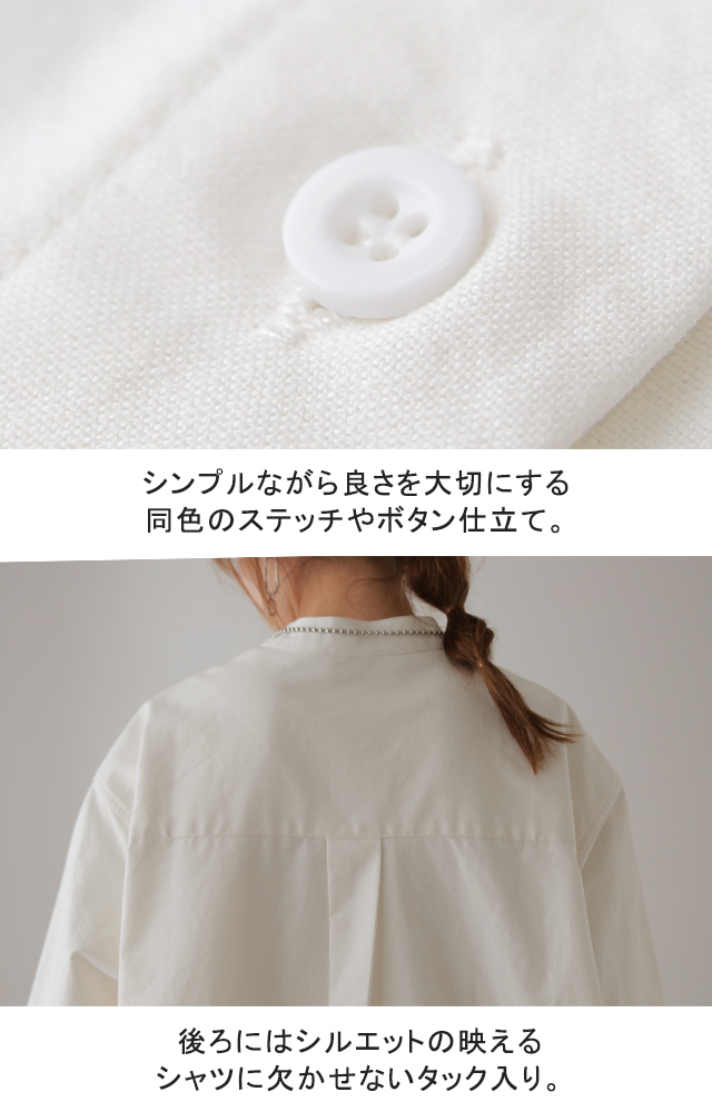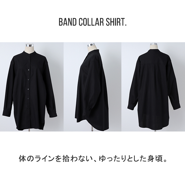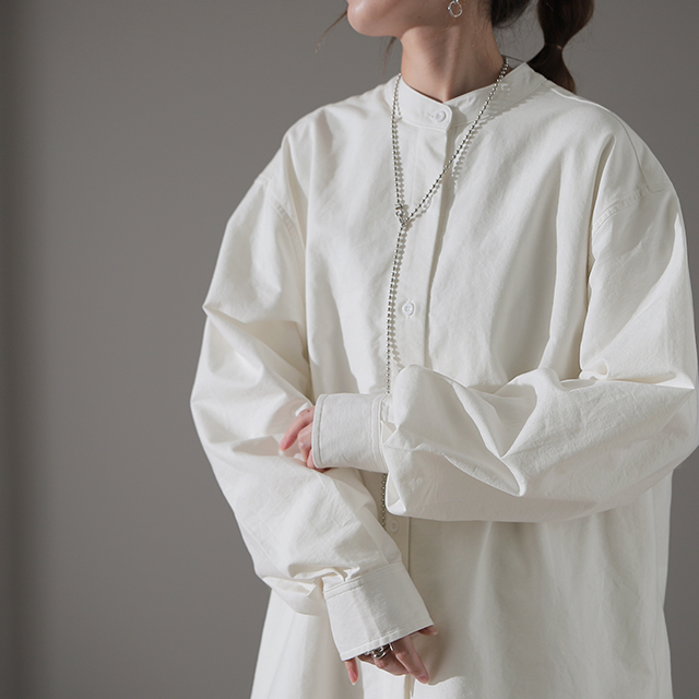 顔周りをすっきりと見せてくれるシンプルなバンドカラーシャツ。