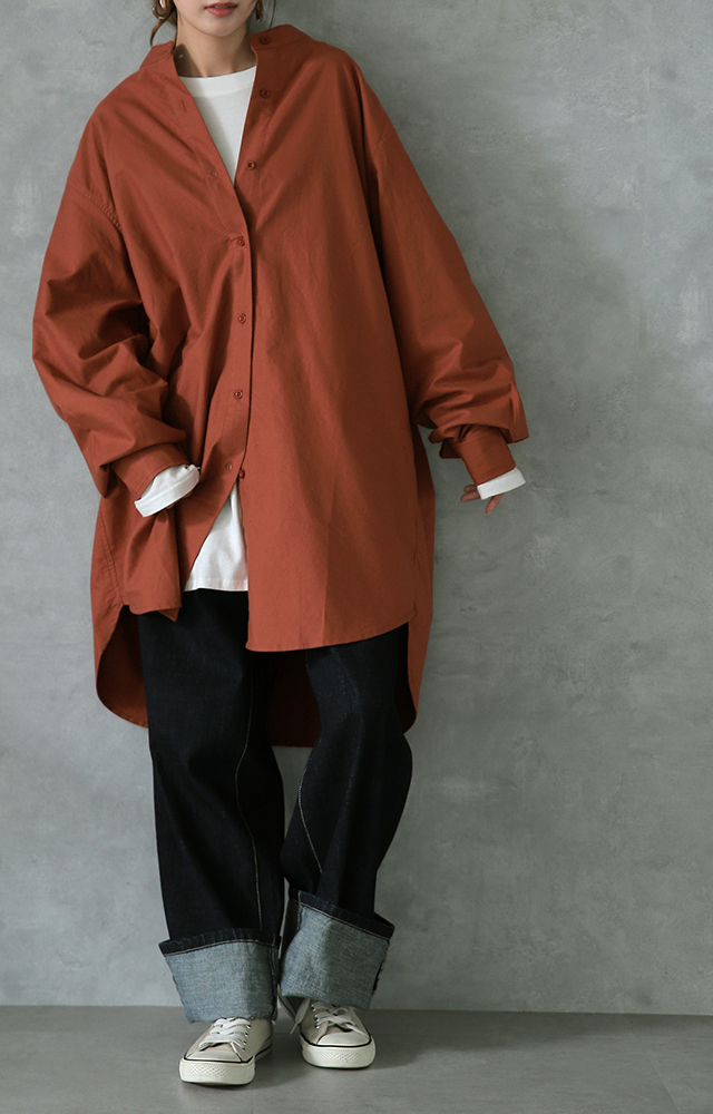 スリット サイドスリット バンドカラーシャツ ノーカラーシャツ ノーカラー 長袖 ロングスリーブ 長袖シャツ スリット入り フレアシャツ フレア Aライン モノトーン ドロップショルダー ラウンドシャツ ラウンド ラウンド裾 無地シャツ 無地ブラウス 無地チュニック 無地 シンプル 長い 長め レイヤードシャツ レイヤードブラウス 羽織 羽織り はおり 重ね着 お尻が隠れる 楽 らくちん らく 楽ちん リラックス ゆるカジ ゆるい ゆるファッション ゆったり レディースファッション こなれ ビックシルエット オーバーサイズ オーバーシルエット ビッグシルエット ビッグ ビック オーバーサイズシャツ ビッグサイズシャツ ビッグシルエットシャツ 体型カバー 大きいサイズ オフィス オフィスカジュアル ゆったりサイズ ゆる すっきり カジュアル ナチュラル ベーシック モード テレワーク リモートワーク リモート オンライン飲み会 着回し 大人 大人カジュアル オトナ 女性 綺麗 きれい キレイ キレイめ きれいめ 高見え 上質 上品 ベージュ モカブラウン ブラウン モカ 茶 茶色 レンガ オレンジ 赤 レッド テラコッタ ブラウン ホワイト 白 白色 ブラック 黒色 黒 ストーングレー フリーサイズ フリー S M L LL 2L XL 3L XXL LLL 20代 30代 40代 50代 おしゃれ 母の日 春夏 春 夏 秋冬 秋 冬 お洒落 オシャレ かわいい 可愛い カワイイ HUGU ハグユー はぐゆー