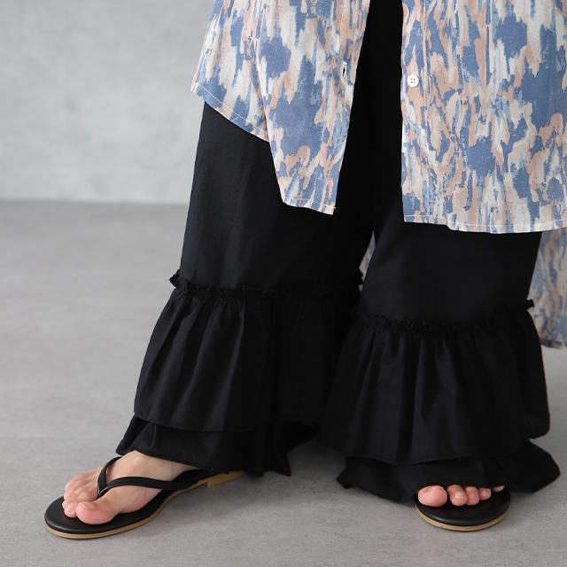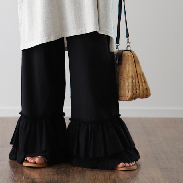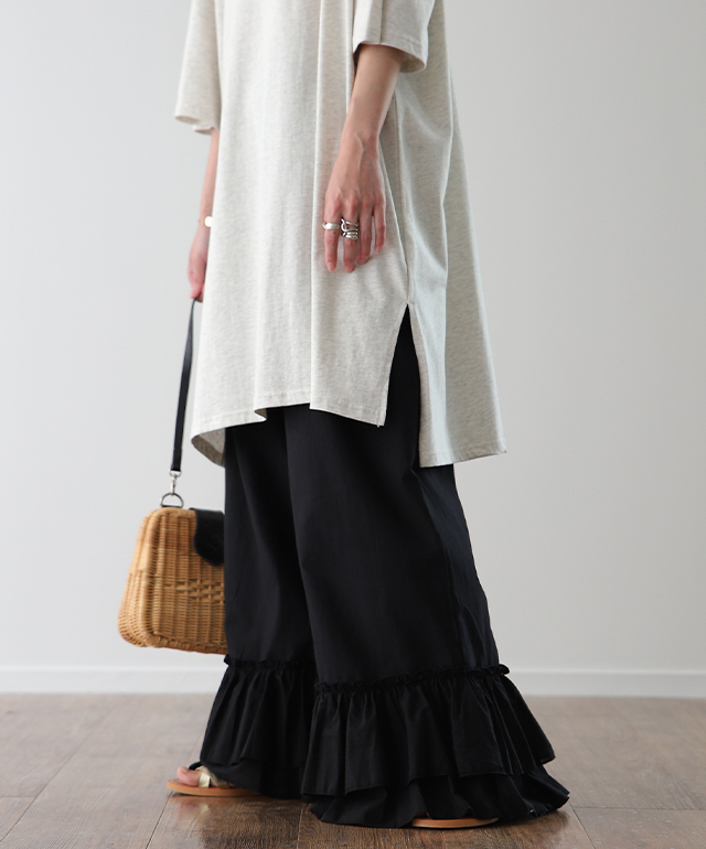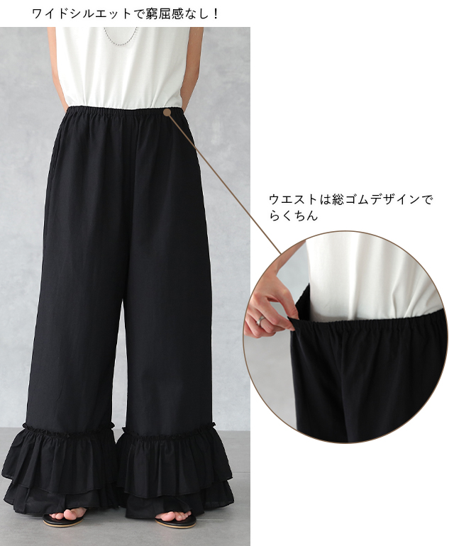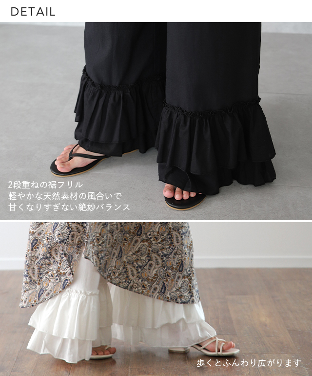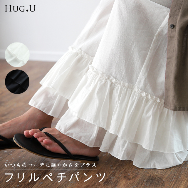 マキシ丈 裾フリル 裾フリルパンツ 裾レース 裾レースパンツ 裾パンツ ペチコートパンツ ぺチスカート スカート風 レイヤードパンツ インナーパンツ 重ねるパンツ リラックス ロングパンツ ワイドパンツ イージーパンツ イージー リラックスパンツ リラックスボトム リラックス フレアパンツ フレア 綿 綿100% コットン100% 動きやすい プラスサイズ 肌隠し 日よけ 日除け 日焼け対策 着痩せ 着回し ゆったり ゆったりサイズ すっきり カジュアル おうち時間 お家時間 ストレスフリー ロング丈 長い 長め ズボン ずぼん 長ズボン 長ずぼん ゴムウエスト ゴムウェスト ウェストゴム ゴム 大きめ 大きい 部屋着 パジャマ ルームウェア ルームウエア ワンマイルウェア レディースファッション 無地 ラクチン 楽 らくちん 楽ちん 楽 動きやすい 体型カバー プラスサイズ 着痩せ 華奢見え ゆったりサイズ ゆる すっきり シンプル カジュアル ナチュラル ガーリー ベーシック テレワーク リモートワーク リモート オンライン飲み会 母の日 プレゼント ギフト 贈り物 大人 大人カジュアル オトナ 女性 綺麗 きれい キレイ キレイめ 高見え 上質 上品 ブラック 黒色 黒 ホワイト 白色 白 フリーサイズ フリー S M L LL 2L XL 3L XXL LLL 20代 30代 40代 50代 おしゃれ 春夏 秋冬 秋 冬 お洒落 オシャレ かわいい 可愛い カワイイ HUGU ハグユー はぐゆー