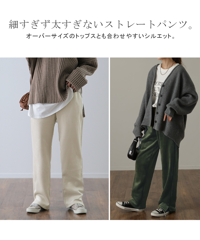 細すぎず太過ぎずのシルエットで色々なトップスとも楽ちんに着映えします。