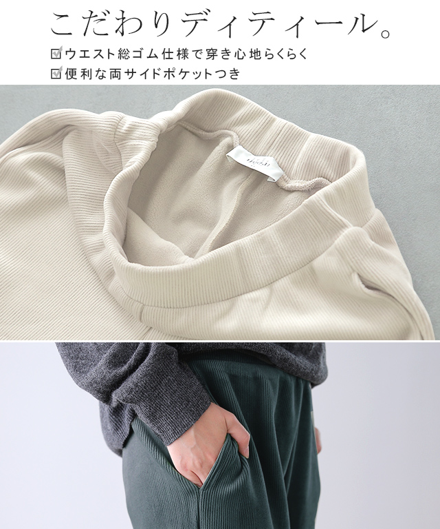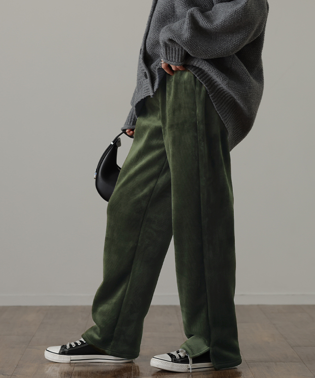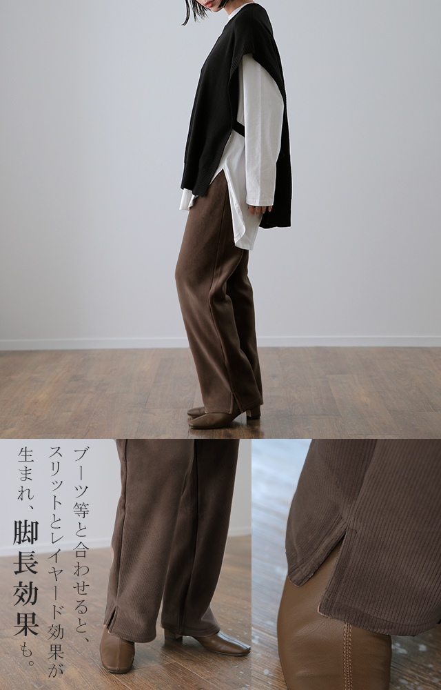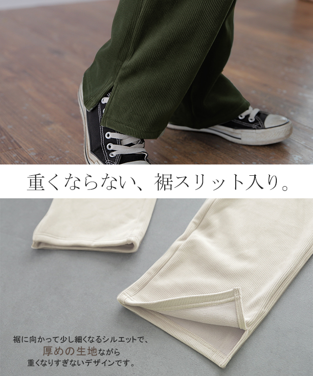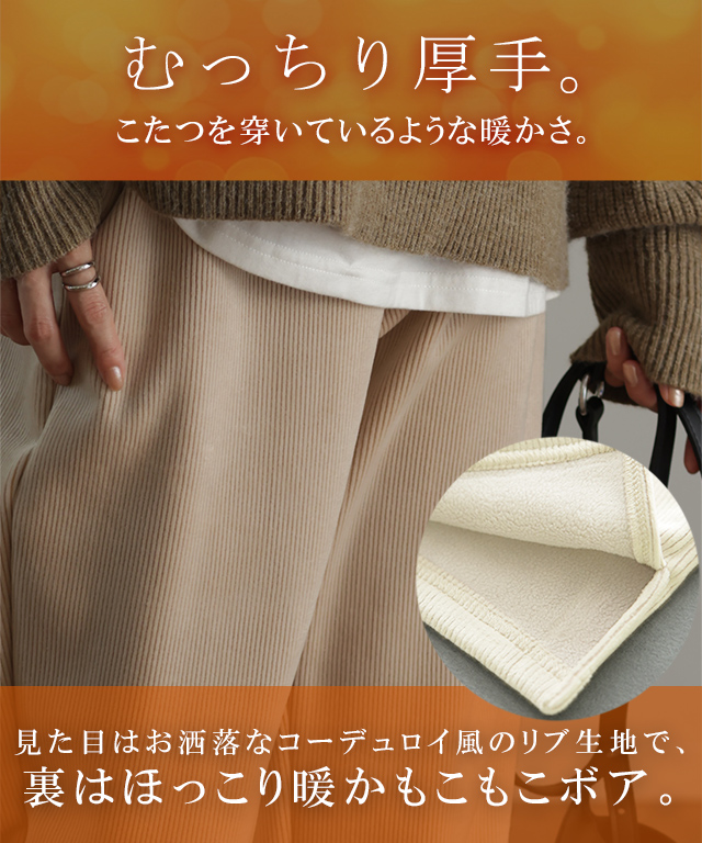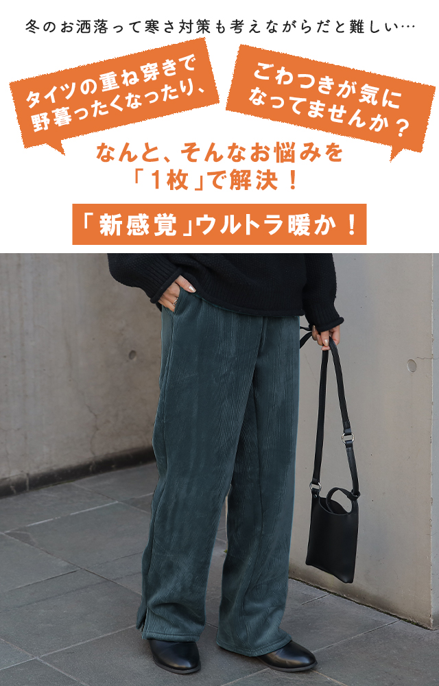 脱力しませんか?ウルトラ 裏起毛 パンツ リブパンツ 一部1月中旬入荷 ボトムス レディース 裏起毛 ワイドパンツ ロング ウエストゴム コーデュロイ スリット 裏ボア 暖か 極暖 厚手 大きいサイズ 黒 冬 秋 秋新作