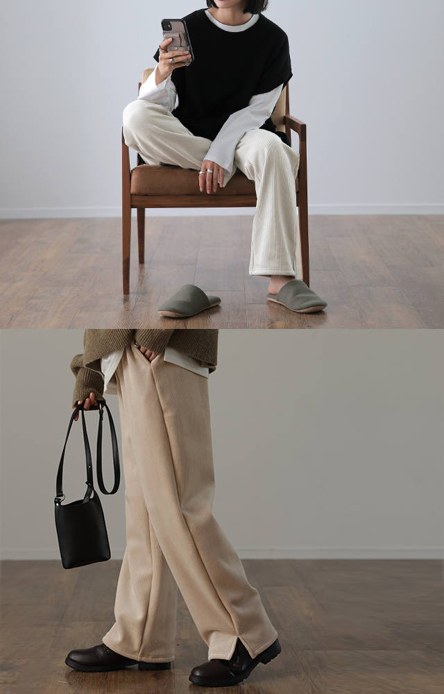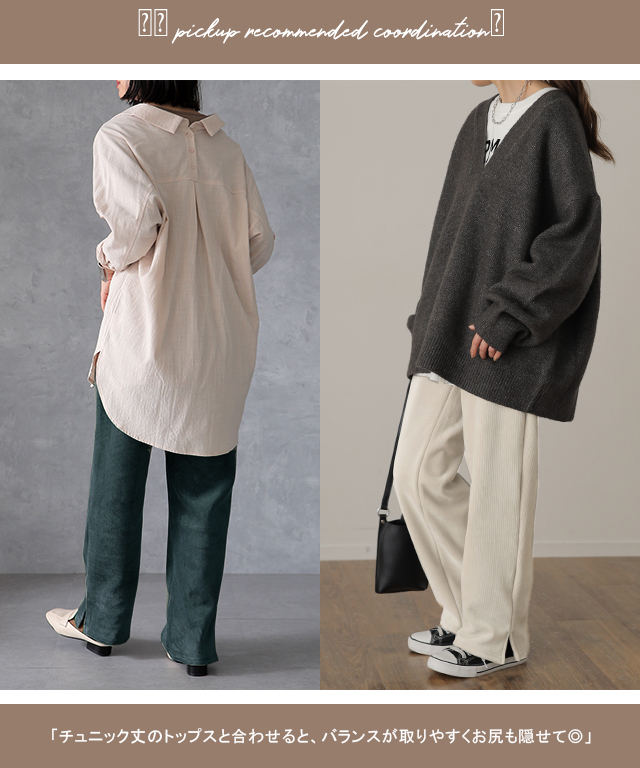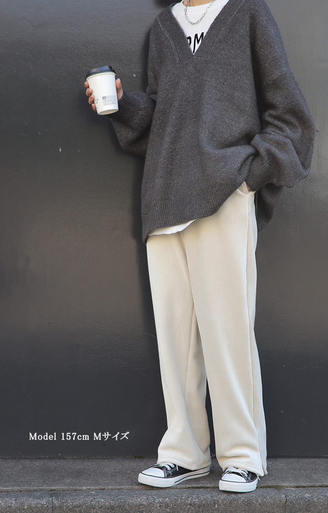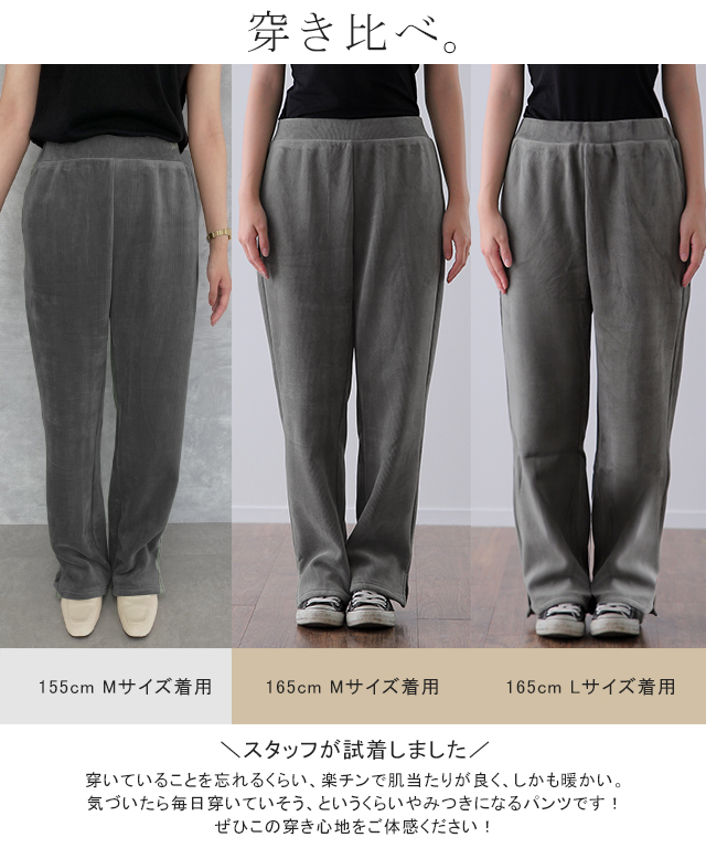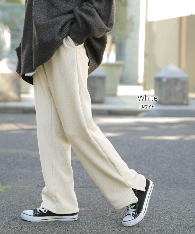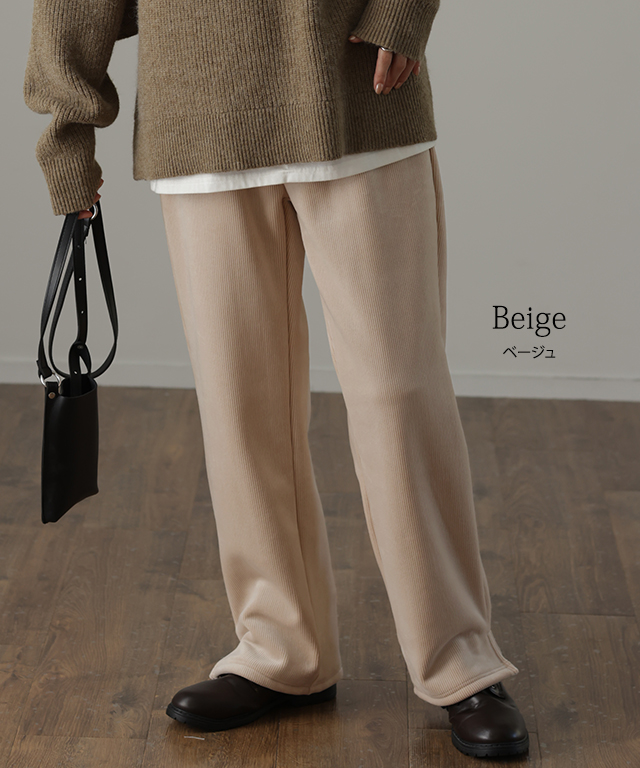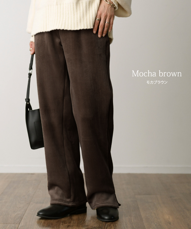 脱力しませんか?ウルトラ 裏起毛 パンツ リブパンツ 一部1月中旬入荷 ボトムス レディース 裏起毛 ワイドパンツ ロング ウエストゴム コーデュロイ スリット 裏ボア 暖か 極暖 厚手 大きいサイズ 黒 冬 秋 秋新作