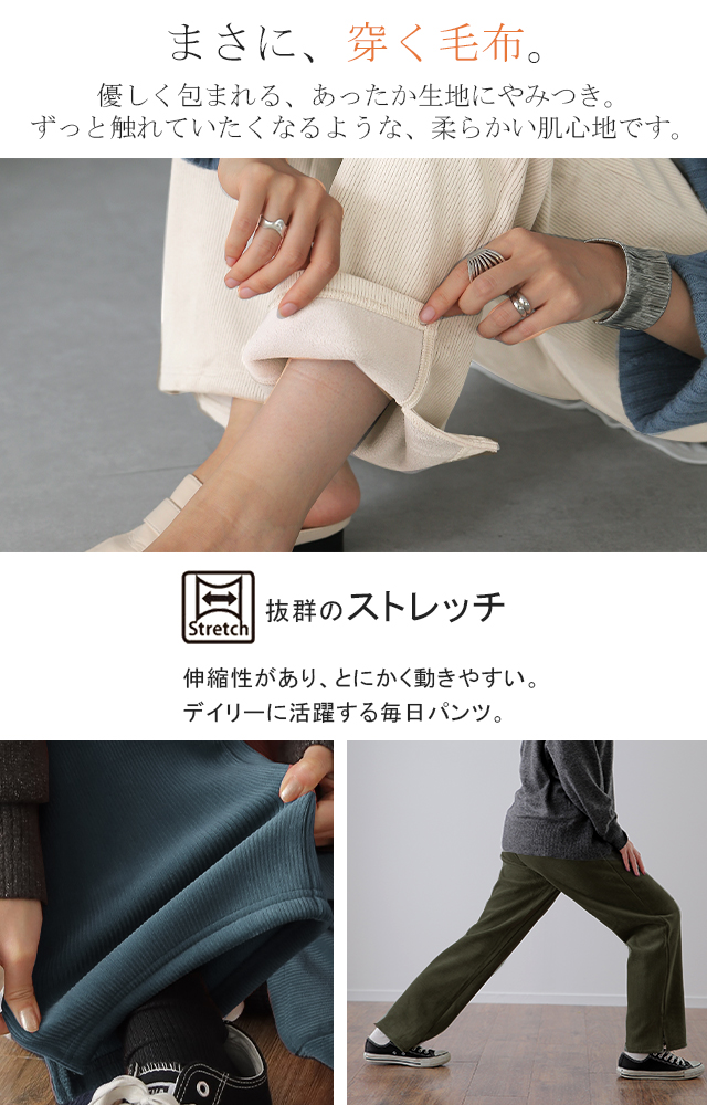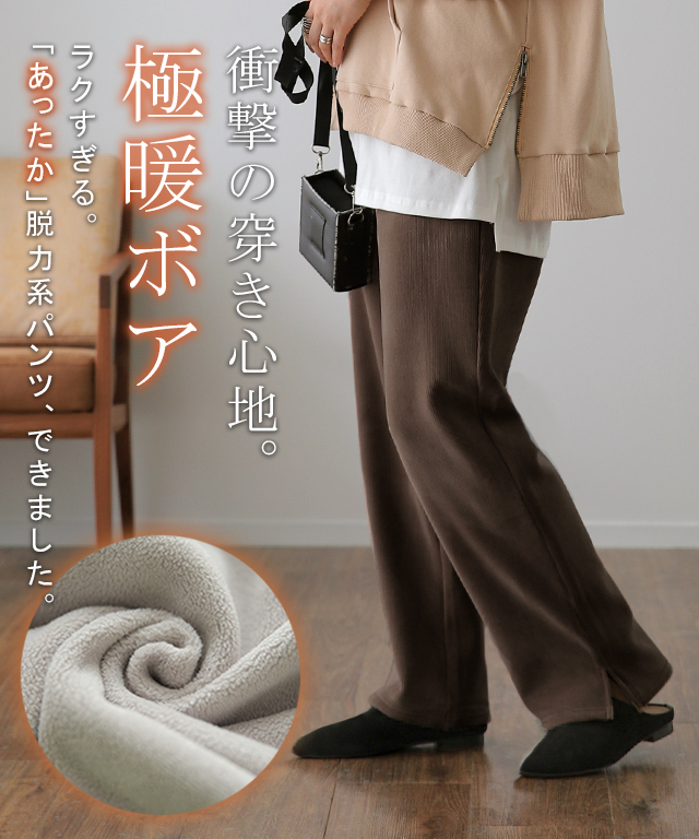 ロングパンツ スリットパンツ イージー イージー素材 イージーパンツ 裏起毛パンツ 裏ボアパンツ 裏フリース 裏フリースパンツ 暖か あったか あたたかい 防寒 楽 リラックスパンツ リラックスボトム おうち時間 お家時間 ワイドパンツ ストレスフリー ストレッチ素材 ストレッチパンツ ストレート ロング丈 長い 長め ナチュラル フレア フレアパンツ ズボン ずぼん 長ズボン 長ずぼん ゴムウエスト ゴムウェスト ウェストゴム ポケット ストリート ワンマイルウエア ワンマイルウェア 部屋着 ルームウェア パジャマ レディースファッション ラクチン らくちん 楽ちん リラックス ゆるカジ ゆるい ゆるファッション ゆったり こなれ 母の日ギフト ゆったりサイズ ゆる すっきり シンプル カジュアル ナチュラル ベーシック テレワーク リモートワーク リモート オンライン飲み会 着回し 大人 大人カジュアル オトナ 女性 綺麗 きれい キレイ キレイめ 高見え 上質 上品 ラクチン 楽 らくちん 楽ちん 動きやすい プラスサイズ 着痩せ 着回し プレゼント ギフト 贈り物 重ね着 プラスサイズ ゆったり ゆったりサイズ ゆる すっきり カジュアル 着回し 大人 大人カジュアル オトナ 女性 綺麗 きれい キレイ きれいめ キレイめ 高見え 上質 上品 モカブラウン ブラウン ホワイトグレー ホワイト グレーオフホワイト チャコールグレー チャコール ブラック ペールカーキ カーキ グリーン ピスタチオ S M L LL 2L XL 3L XXL LLL 20代 30代 40代 50代 おしゃれ 春夏 春 夏 秋 冬 秋冬 シンプル お洒落 オシャレ かわいい 可愛い カワイイ HUG.U HUGU ハグユー はぐゆー