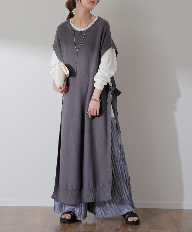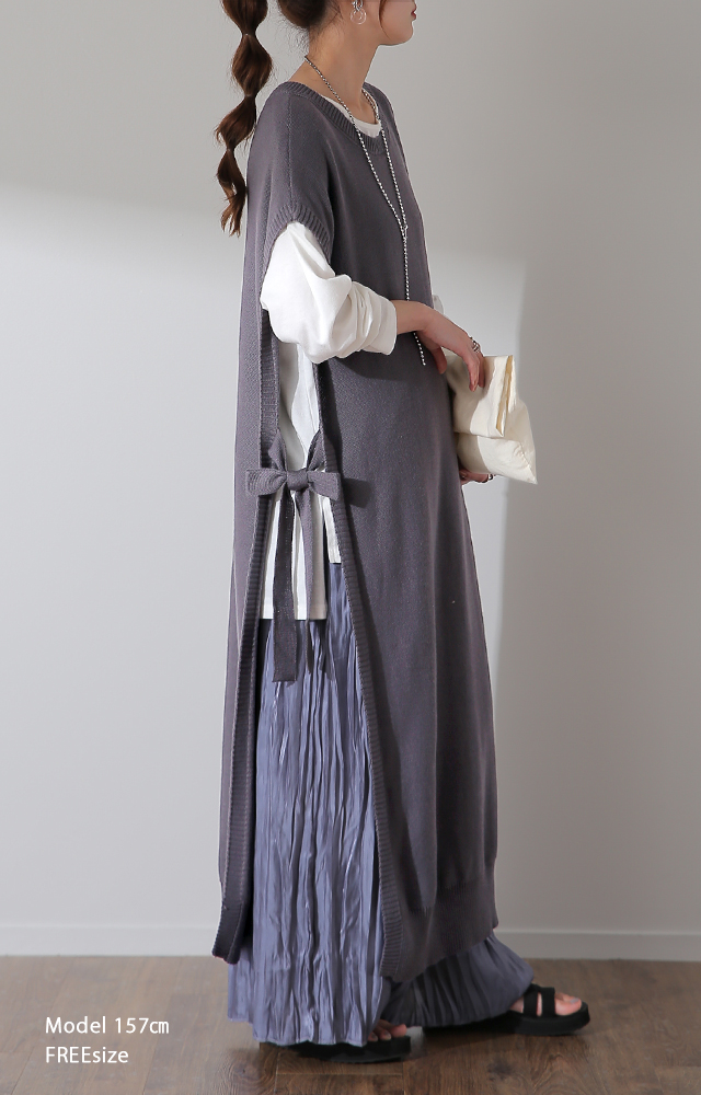 サイドリボンベスト サイドリボンニット サイドリボン ベスト ロングワンピース ラウンドネック Uネック ベストワンピース Iライン 縦長 重ね着 ニットベスト タンクトップ ニットタンクップ ノースリーブ タンク レイヤード レイヤードニット サイドスリット スリット ハイゲージ ロングニット ロングニットベスト 着痩せ 前後差 前後差ニット お尻が隠れる サイドオープン サイドオープンニット リブ リブニット ジレ 二の腕カバー 五分袖 5分袖 タンクトップ シンプル 無地 長め 長い 大きい 大きめ ロング ロング丈 ローゲージ リブ ブラック 黒色 オーガニックベージュ ベージュ 茶 茶色 キャメル サンドベージュ ブラウン 茶色 グリーン 緑 モスグリーン 黒 ピンクベージュ チャコール グレー チャコールグレー 灰 灰色 レディースファッション ラクチン 楽 らくちん 楽ちん 動きやすい プラスサイズ 着痩せ カジュアル アウトドア 着回し ゆったりサイズ ゆる すっきり ナチュラル トレンド 旬 モード ベーシック オフィスカジュアル テレワーク リモートワーク リモート オンライン飲み会 おうち時間 リラックス 個性 個性的 母の日 ゆる ゆったり オーバーサイズ ビッグ ビッグサイズ ビックサイズ ママ プレゼント ギフト 贈り物 大人 大人カジュアル オトナ 女性 綺麗 きれい キレイ キレイめ 高見え 上質 上品 S M L LL 2L XL 3L XXL LLL 20代 30代 40代 50代 おしゃれ 春夏 秋冬 冬 秋 お洒落 オシャレ かわいい 可愛い カワイイ HUGU ハグユー はぐゆー