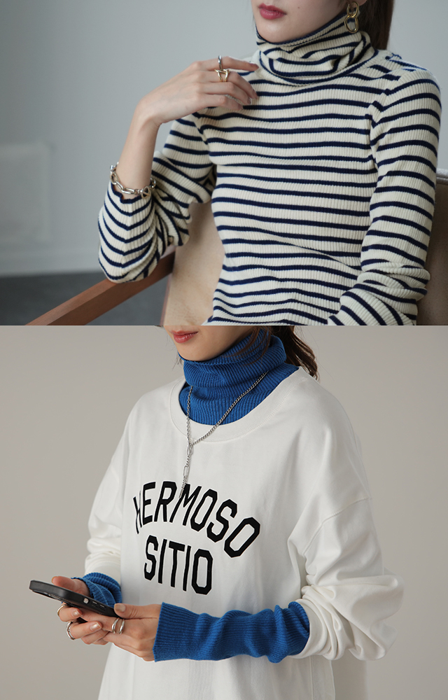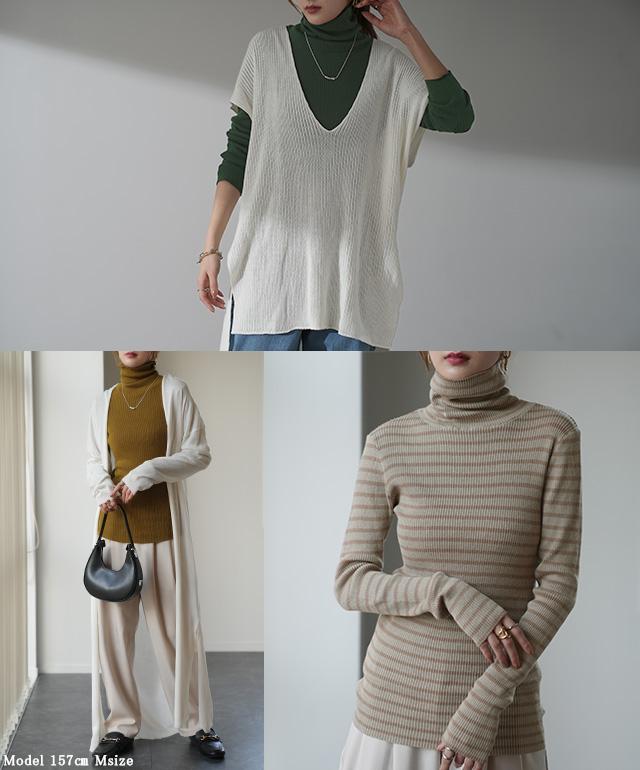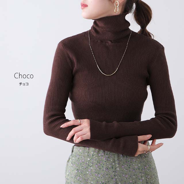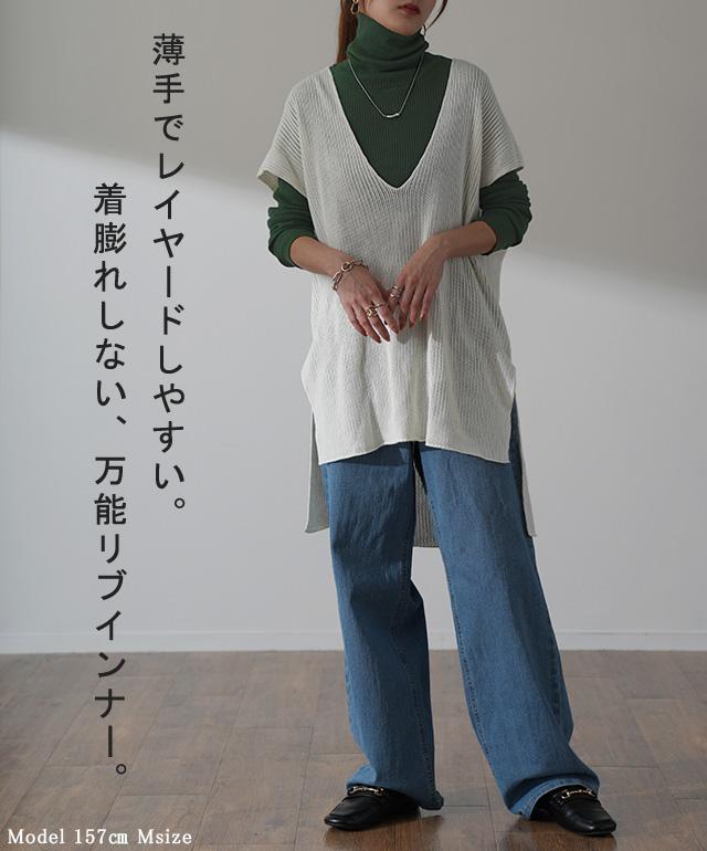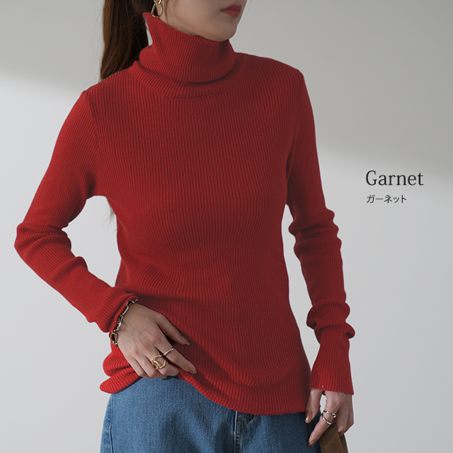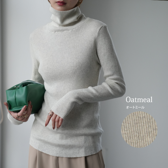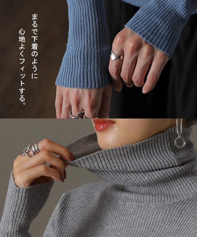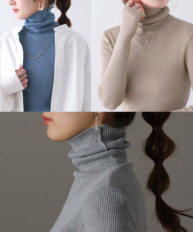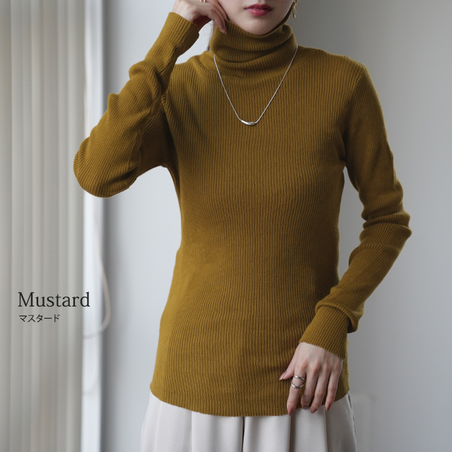 汎用性の高いシンプルなハイネックのリブプルオーバー。