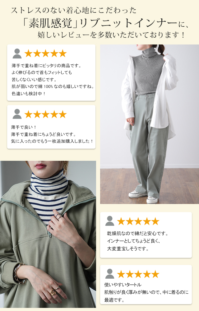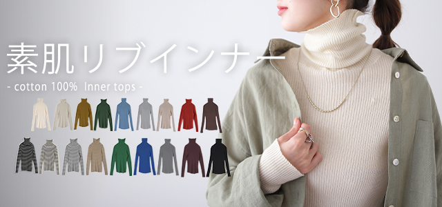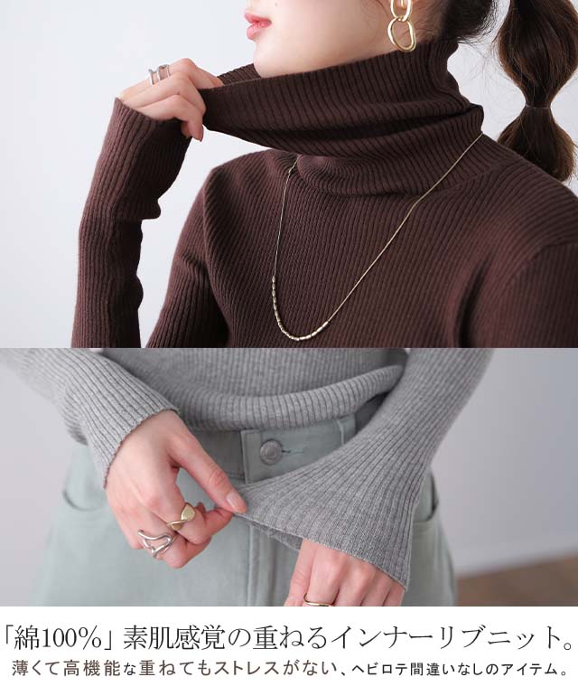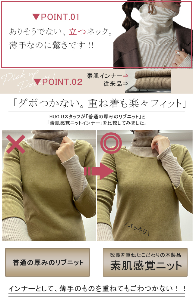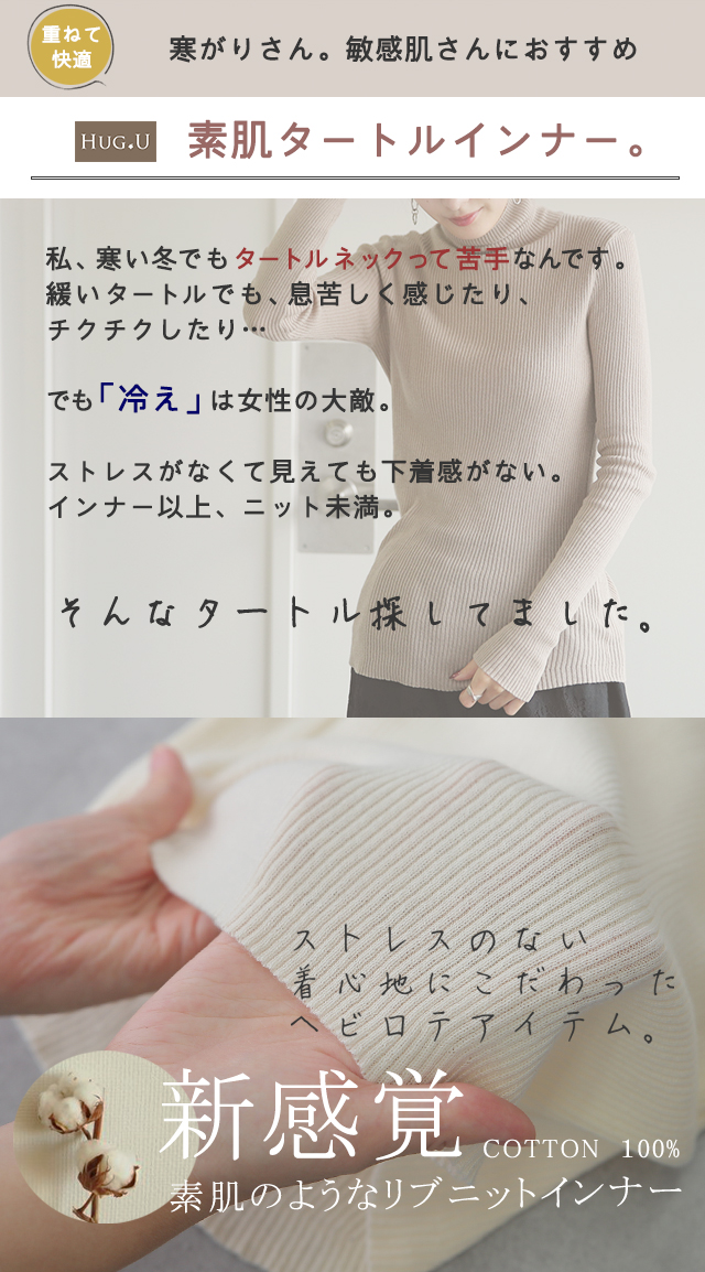 「素 肌 感 覚」 ニット 一部3月中旬入荷 リブ タートル メール便 タートルニット 下着 インナー リブニット タートルネック トップス レディース 長袖 レイヤード 重ね着 白 綿100% コットン 黒 ブラック HUG.U 秋 冬 秋新作 trend_nit