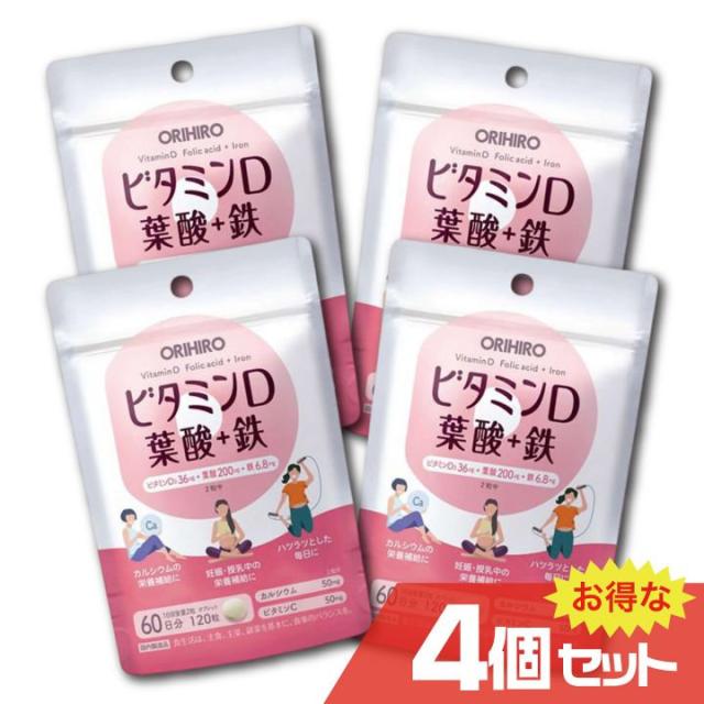 ビタミンD 葉酸+鉄 60日分x4個セット オリヒロ ORIHIRO サプリメント 葉酸 骨 妊娠 出産 カルシウム 鉄