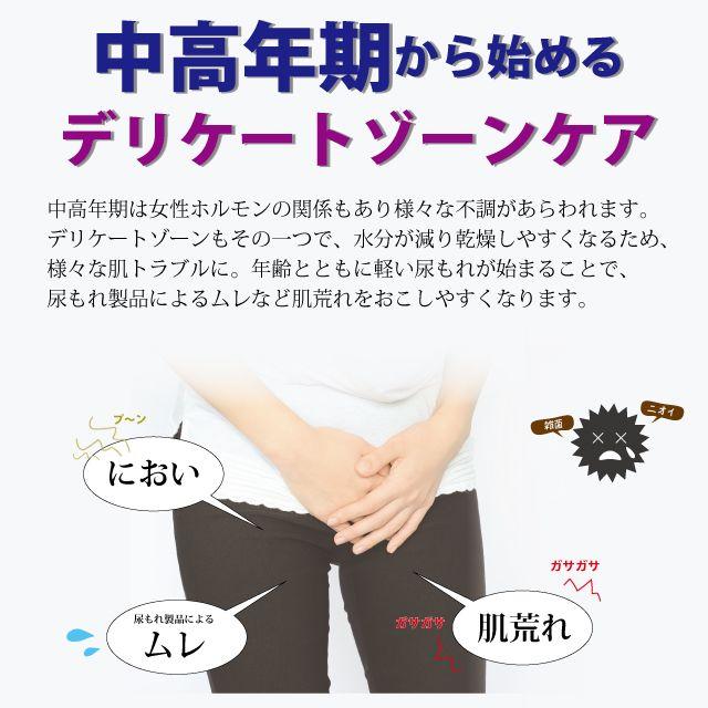 デリケートゾーンの不快感、お肌が敏感になりやすいムダ毛処理の後、ニオイ・ムレが気になるなど、見えないところの女性のお悩みに。