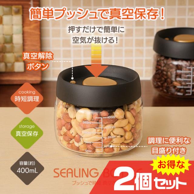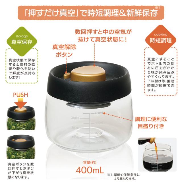 プッシュで時短 真空ポット 小 400mL 2個セット 時短調理 新鮮保存 プッシュするだけ 簡単 真空保存 メモリ付 圧力 鮮度長持ち 使い方色々