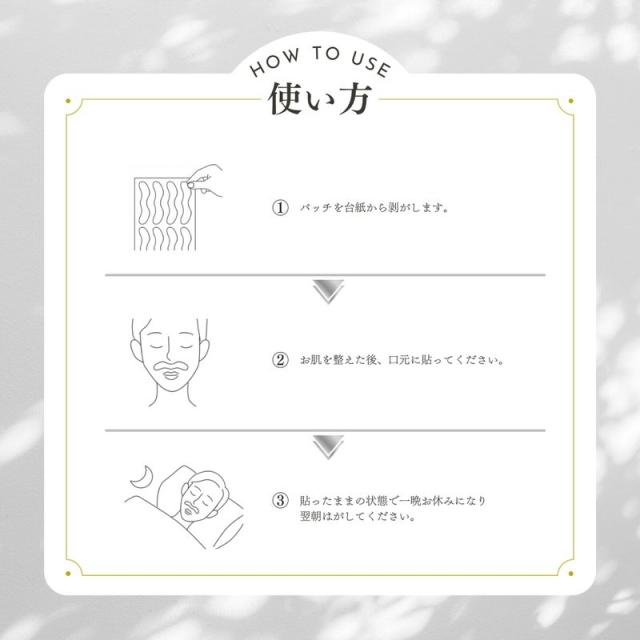 | 検索キーワード | 口元パッチ、美容パッチ、口元しわ対策、ヒト幹細胞、エクソソーム、ヒト脂肪細胞順化培養液、口もと集中ケア、口元エステ、貼る美容液、日本製、エイジングケア、成分贅沢、しっとり保湿、肌引き締め、ペプチド配合、ナイトケア、潤いチャージ、フェイスケア、ミネラルオイル、スクワラン |