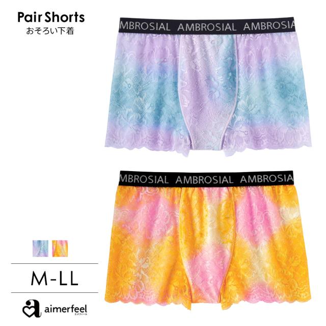 シャイニーグラデ メンズ ボクサーショーツ 前閉じ 下着 パンツ ショーツ お揃い かわいい 単品 ペアショーツ 男性 彼氏 ウエストロゴ ブリーフ 夫婦 メンズショーツ プレゼント 花柄レース 総柄 おそろい カップル メール便可 1950328 エメフィール
