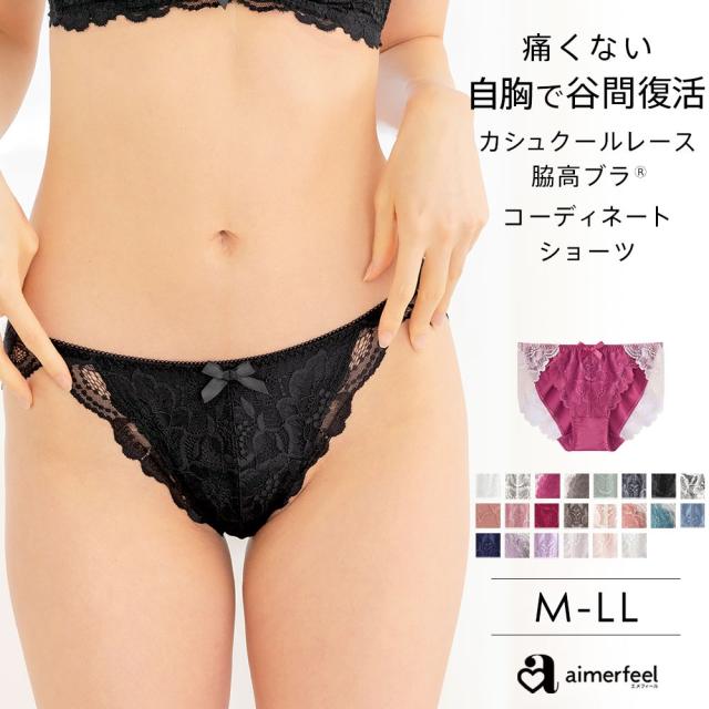 ※この商品はカシュクールレース プレーンショーツ(商品番号:603721)と後身部分の生地感、肌触りが異なります。※この商品のレース部分は、透け感のあるデザインになっております。肌の透けが気になる方はご注意ください。※デリケートな商品になっております。お洗濯は手洗いし、お取り扱いの際は商品のタグ表記に従ってくださいませ。