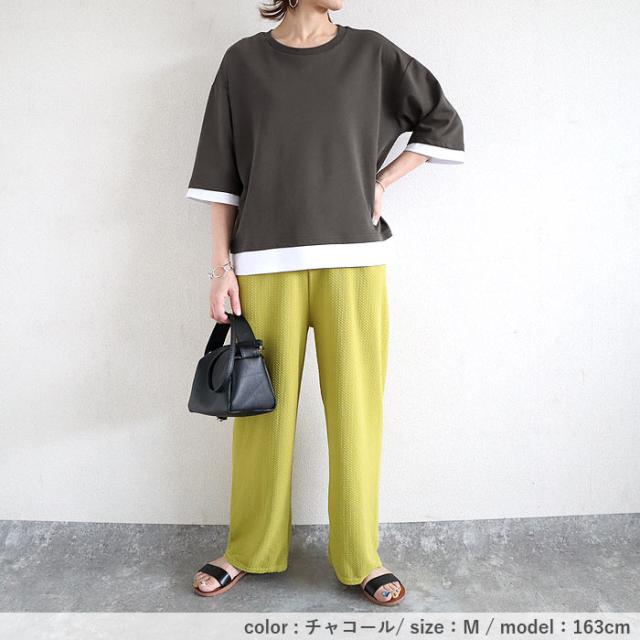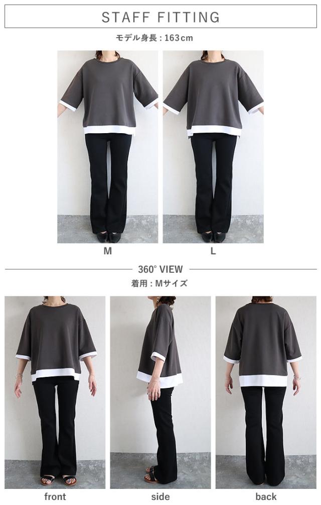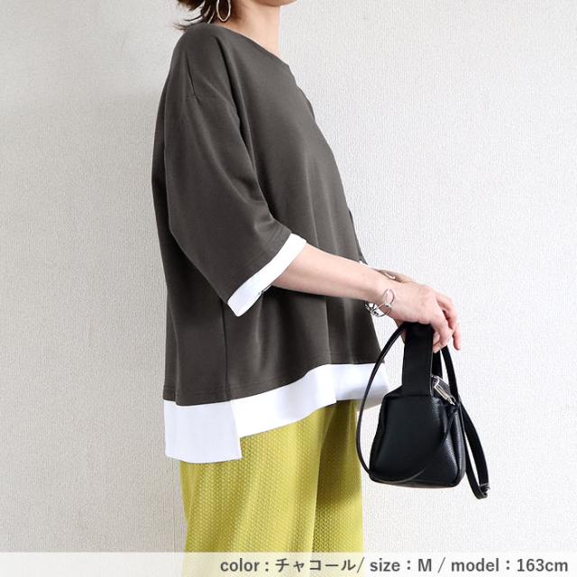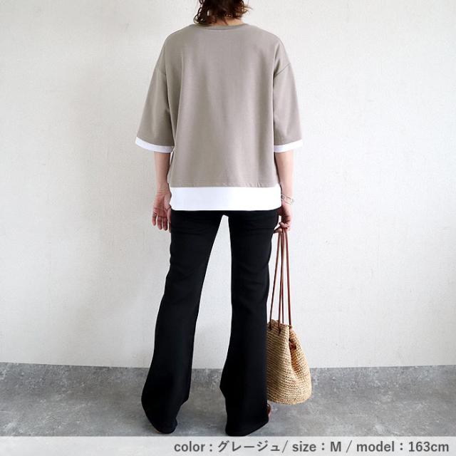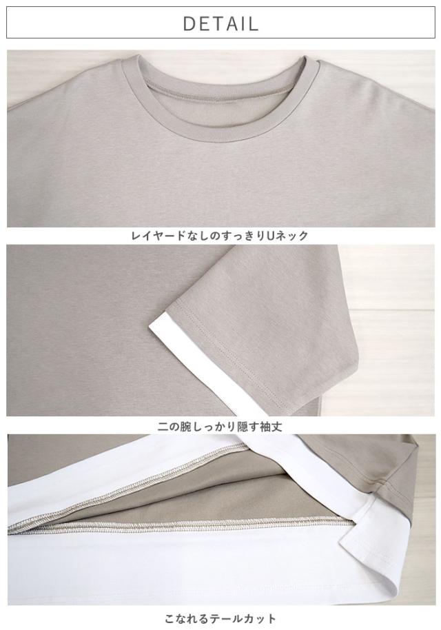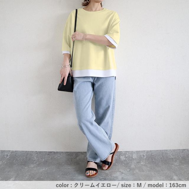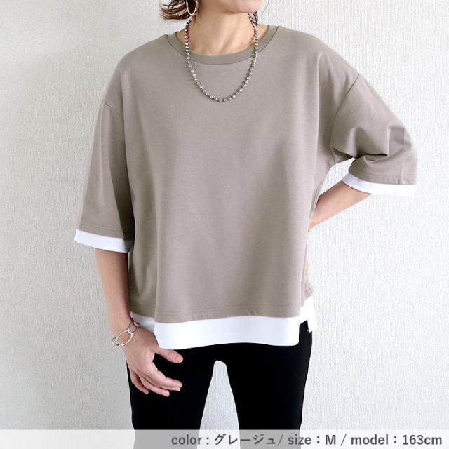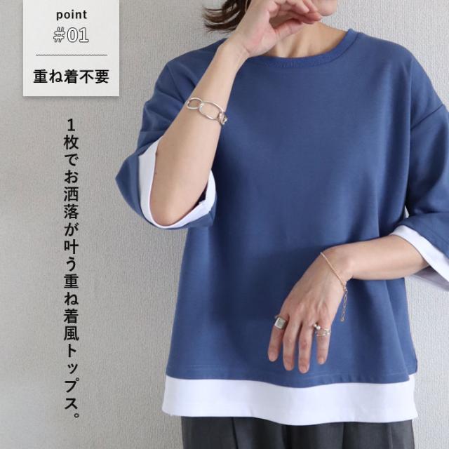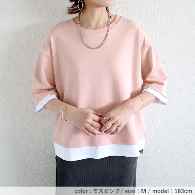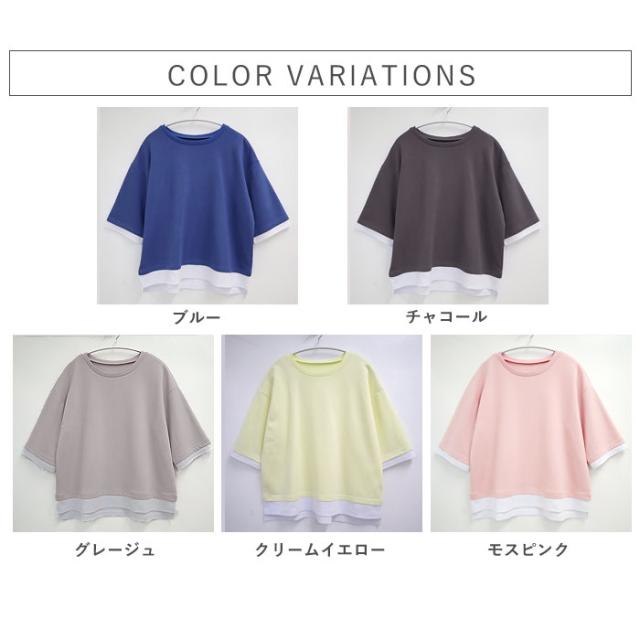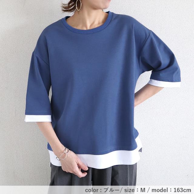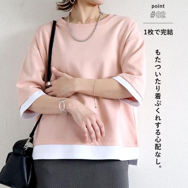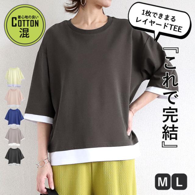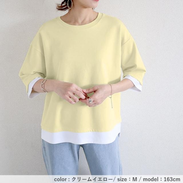 春新作 カットソー レディース トップス おしゃれ 無地 七分袖 半袖 重ね着風 綿混 シンプル [郵2]^t1088^ ★