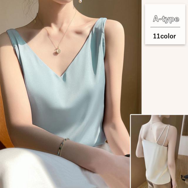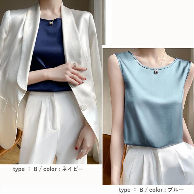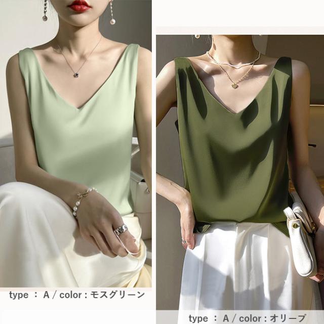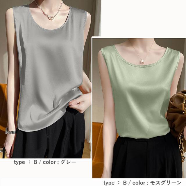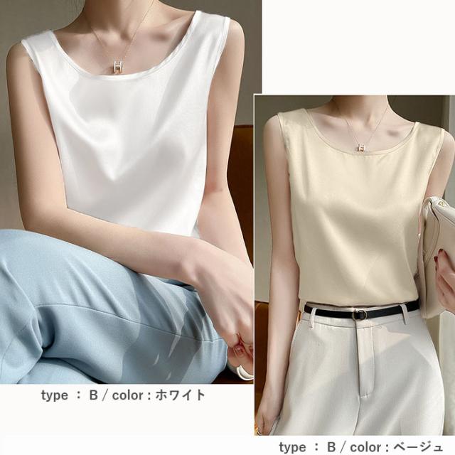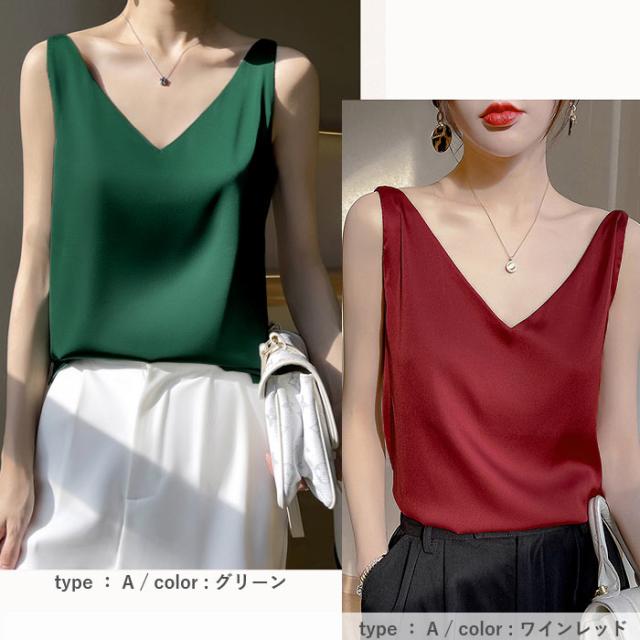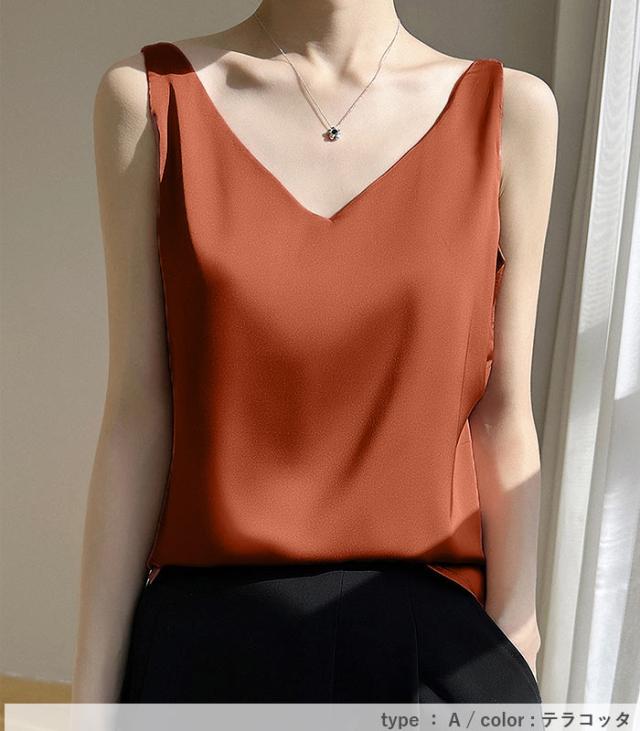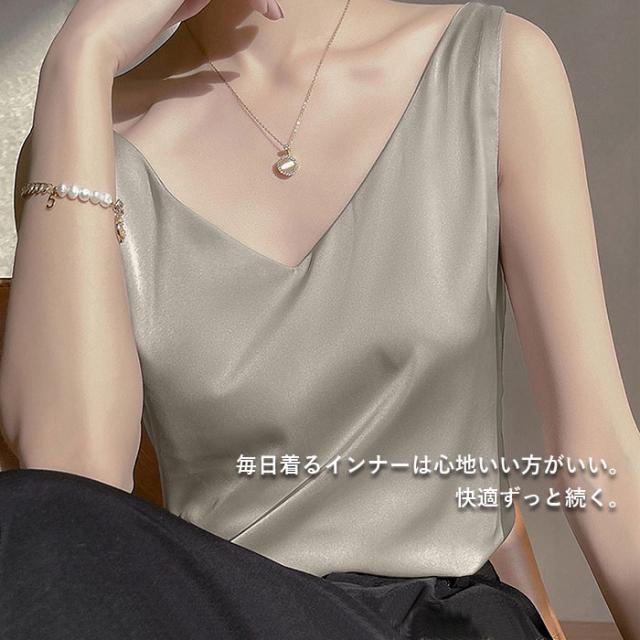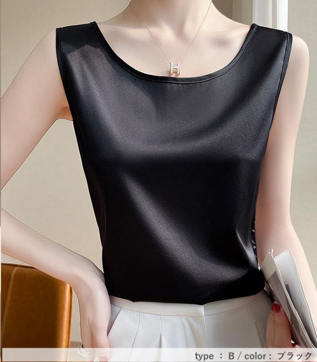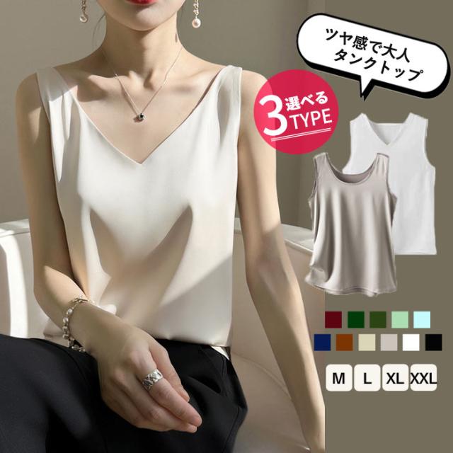 秋新作 タンクトップ レディース シルクタッチ キャミソール タンクトップ サテン調 3タイプ 選べる トップス インナー[郵1]^t1102^