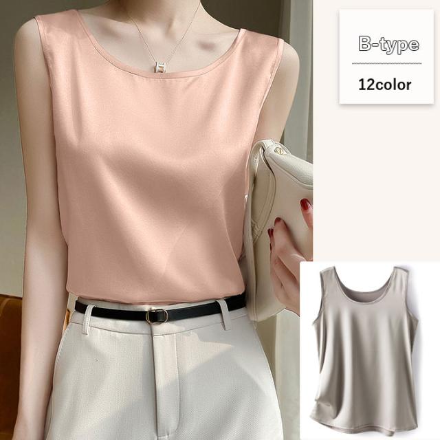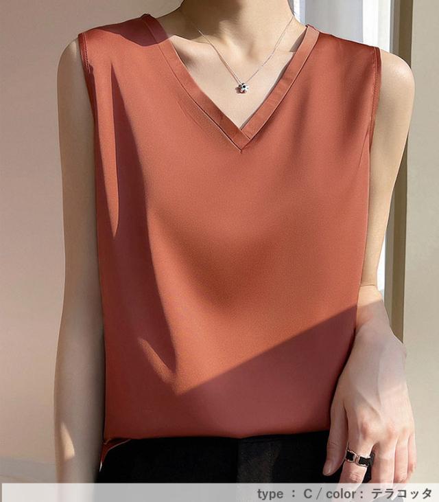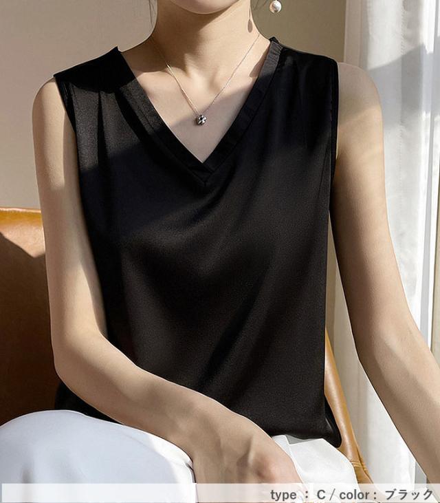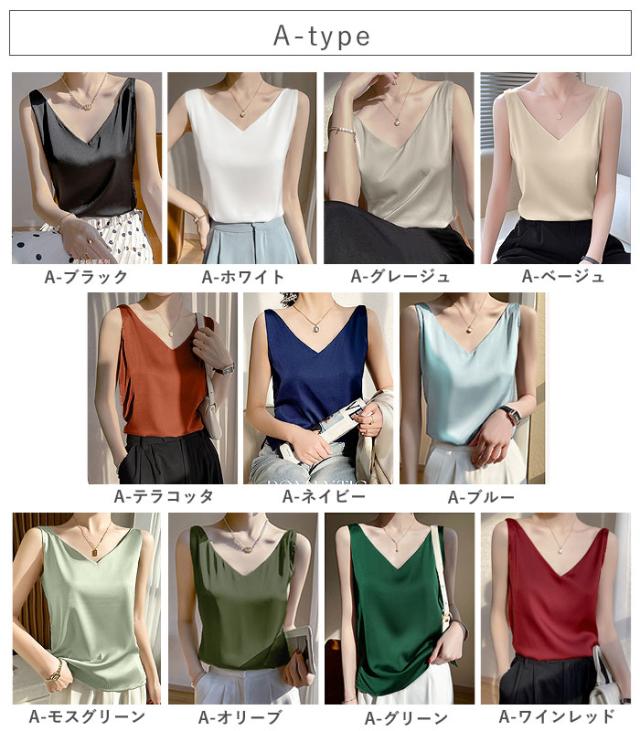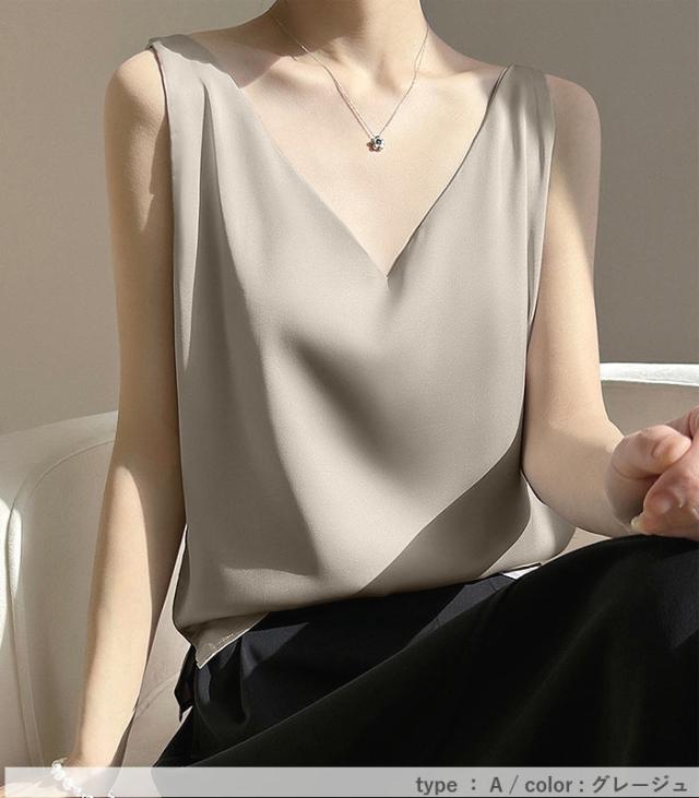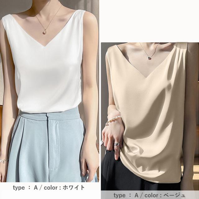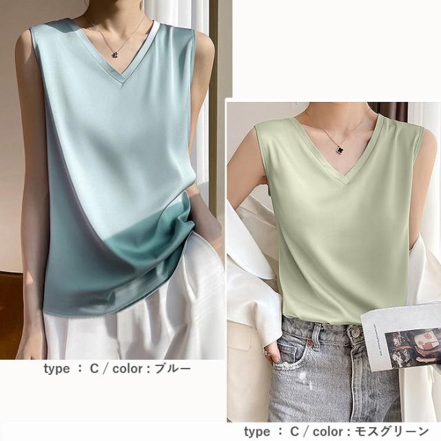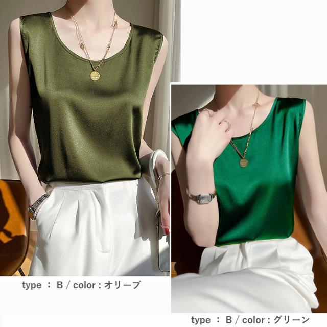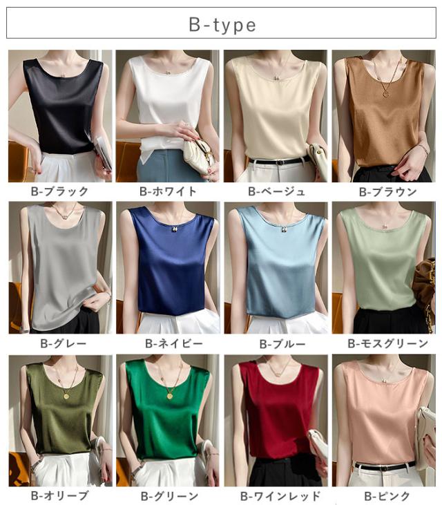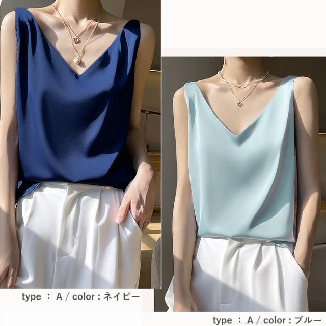 秋新作 タンクトップ レディース シルクタッチ キャミソール タンクトップ サテン調 3タイプ 選べる トップス インナー[郵1]^t1102^