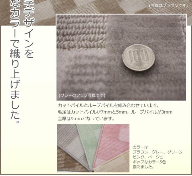 激安 ラグ カーペット バール (H) 六畳 6畳 6帖 約261×352cm 日本製 じゅうたん ホットカーペット対応 レトロ 幾何学デザイン 床暖対応 サイズカットOK 引っ越し 新生活