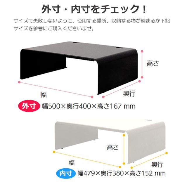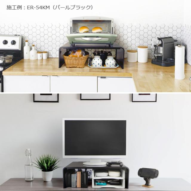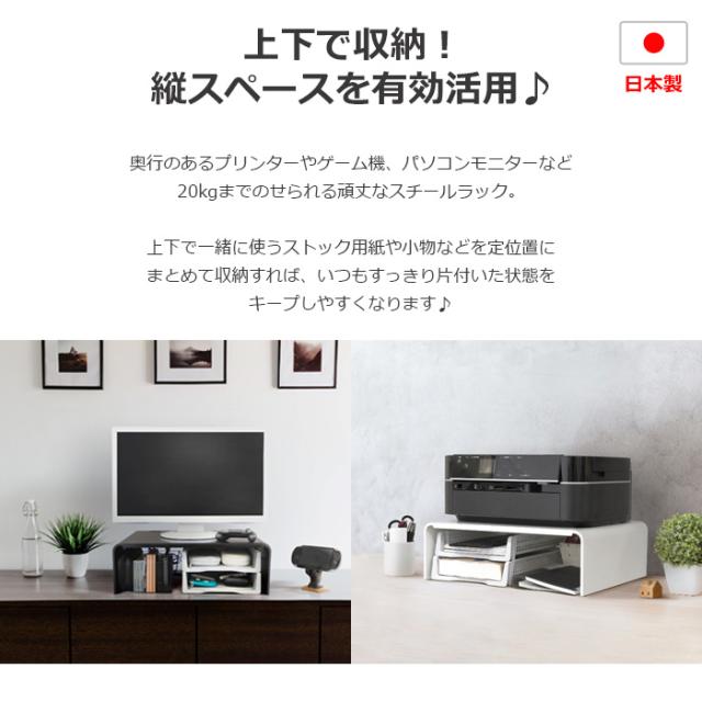 キッチンラック 卓上 机上 ラック 収納 幅 50cm 奥行 40cm 耐荷重 20kg スチール製 サビに強い 日本製 黒 白 ホワイト ブラック 台 おしゃれ 北欧 PCラック W50×D40×H16.7cm イージーラック ER-54 (R)