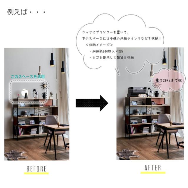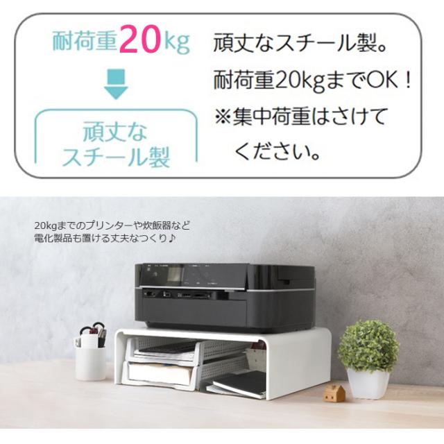 トースターやプリンターなど収納ラックを使えば上下に物が置けます。