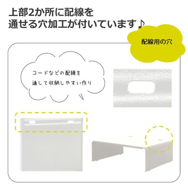 上部2か所に配線をすっきりまとめられる穴加工が施されています。