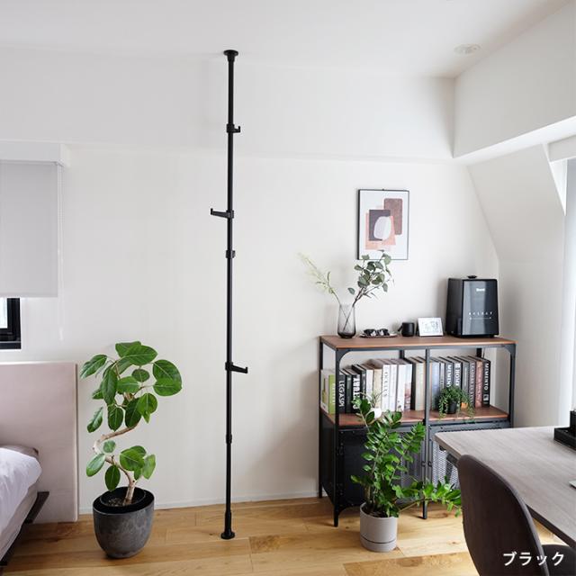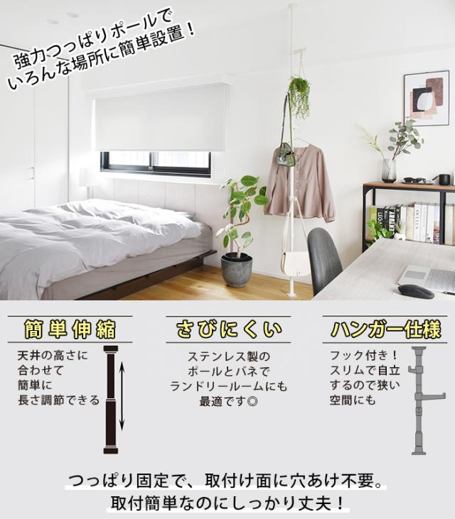 強力な天井つっぱりポールを天井の高さに合わせて簡単に長さ調節できます。