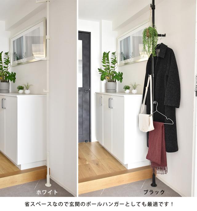 スリムで自立するので狭い空間にもおすすめな、つっぱりポールハンガー。