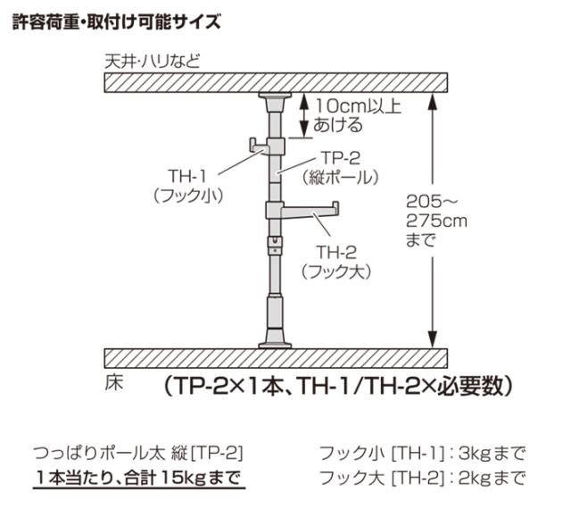 突っ張り棒 Naivis ポールハンガーセット フック大小各1個 約205〜275cm伸縮 TOSO トーソー 強力 ハンガーラック おしゃれ つっぱり コート掛け 収納 省スペース