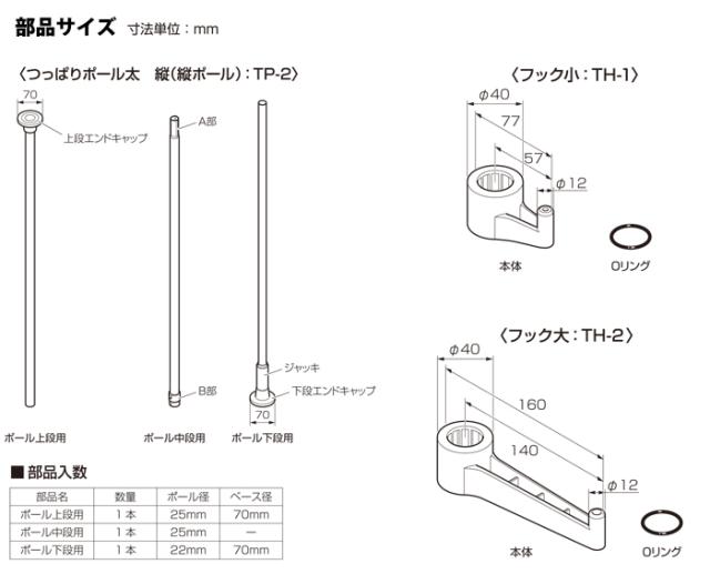 [フック1個入りセット] 縦ポール×1、フック小×1、フック大×1