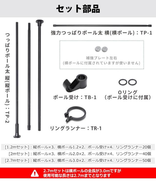 [1.2mセット] 縦ポール×3、横ポール1.2×2、ポール受け×4、リングランナー20個