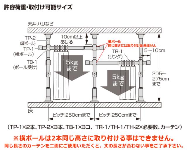 ■耐荷重(目安):カーテン重量 合計約5kg+5kg