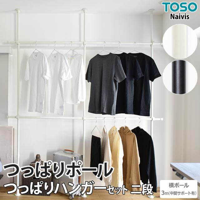 突っ張り棒 Naivis つっぱりハンガーセット二段 横ポール3m(中間サポートあり) TOSO トーソー ハンガーラック おしゃれ 物干し竿 収納 伸縮 ランドリー 省スペース 屋内 強力