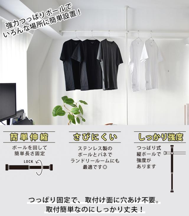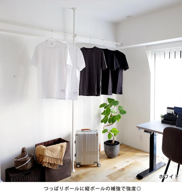 突っ張り棒 Naivis つっぱりポール 中間サポートあり 横ポール 2m TOSO トーソー ハンガーラック おしゃれ 物干し竿 収納 伸縮 ランドリー 省スペース 屋内