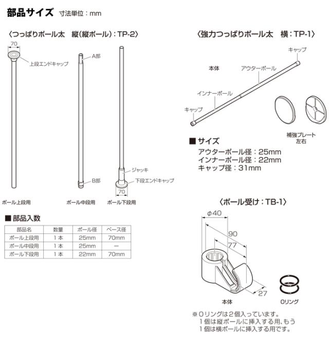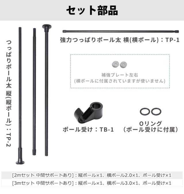 [2mセット 中間サポートあり] 縦ポール×1、横ポール2.0×1、ポール受け×1