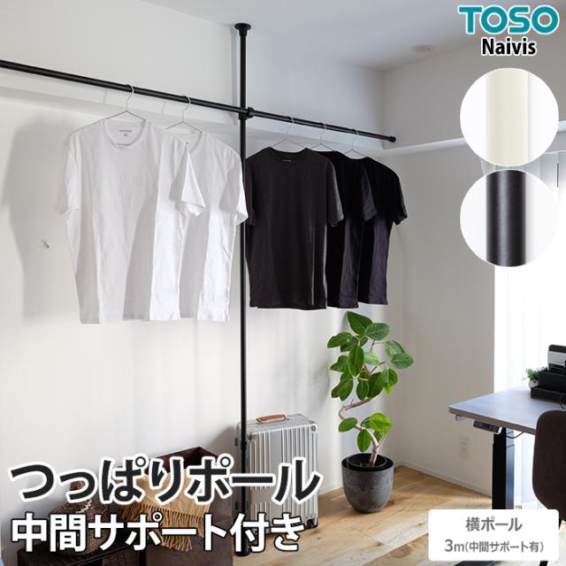 突っ張り棒 Naivis つっぱりポール 中間サポートあり 横ポール 3m TOSO トーソー ハンガーラック おしゃれ 物干し竿 収納 伸縮 ランドリー 省スペース 屋内