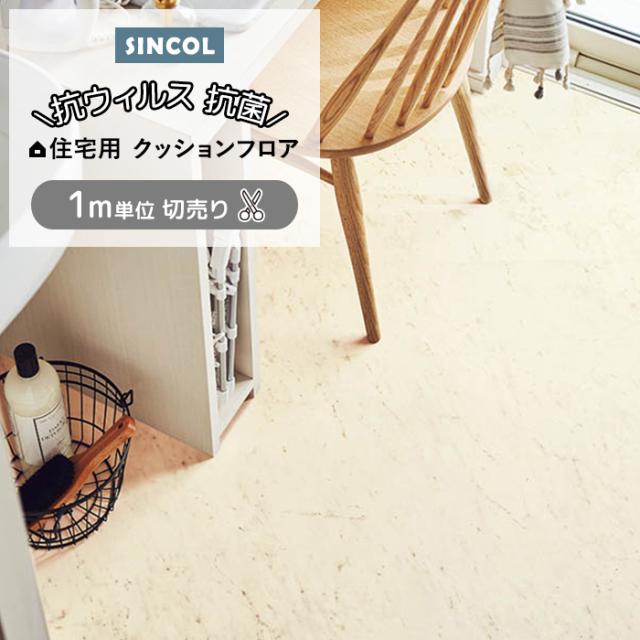 【202511_サンキュー配送対応不可のため掲載終了】シンコール クッションフロア (Sin) 切売り 約182cm幅(1mあたり) ビアンコカララ2 E1083 約1.8mm厚 抗ウィルス リノベーションシート リメイクシート クッションフロアマット CF フロアシート ポンリューム