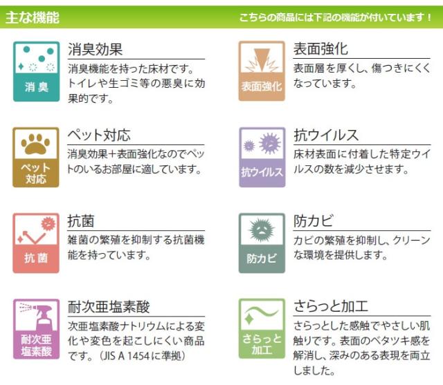 ◆機能:抗ウィルス、耐次亜塩素酸、消臭、表面強化、ペット対応、抗菌、防カビ、さらっと加工