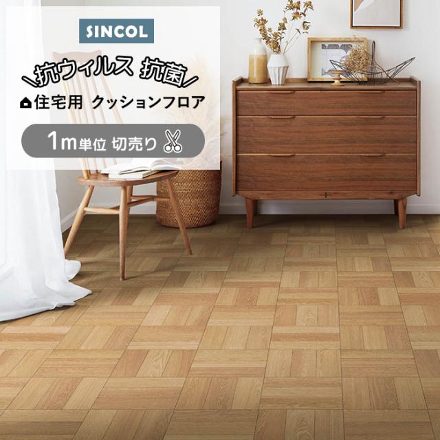 【202511_サンキュー配送対応不可のため掲載終了】シンコール クッションフロア (Sin) 切売り 約182cm幅(1mあたり) チェッカーパーケット E1050 約1.8mm厚 抗ウィルス リノベーションシート リメイクシート クッションフロアマット CF フロアシート ポンリューム