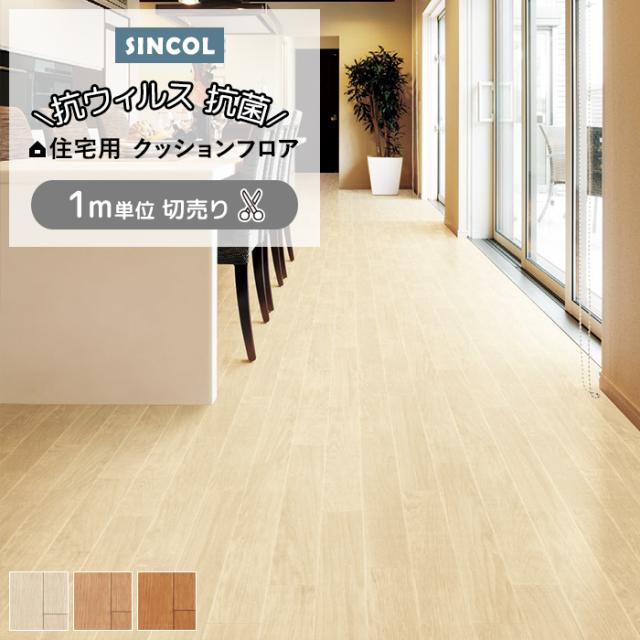 【202511_サンキュー配送対応不可のため掲載終了】シンコール クッションフロア (Sin) 切売り 約182cm幅(1mあたり) オーク2 E1034〜1036 約1.8mm厚 抗ウィルス リノベーションシート リメイクシート クッションフロアマット CF フロアシート ポンリューム