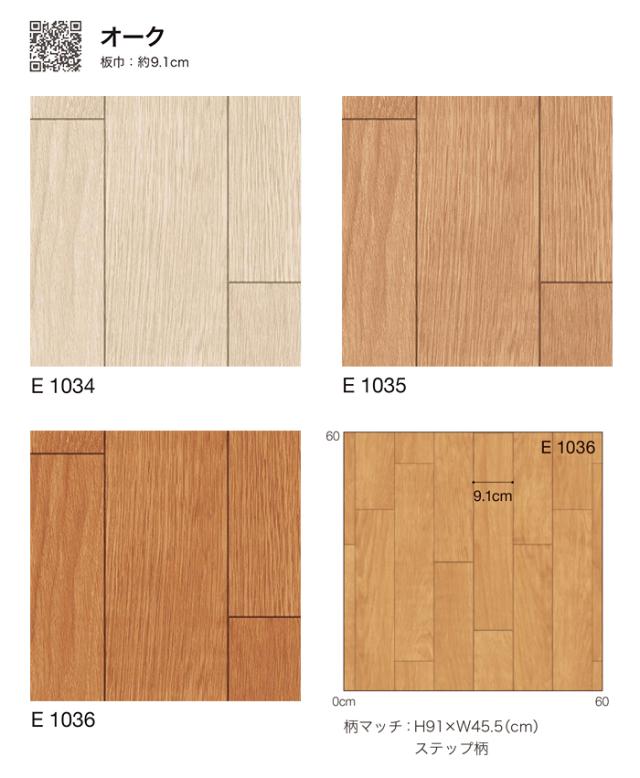 【202511_商品がサンキュー配送対応不可のためサンプルも掲載終了】シンコール クッションフロア (Sin) 生地サンプル オーク2 E1034〜1036 引っ越し 新生活