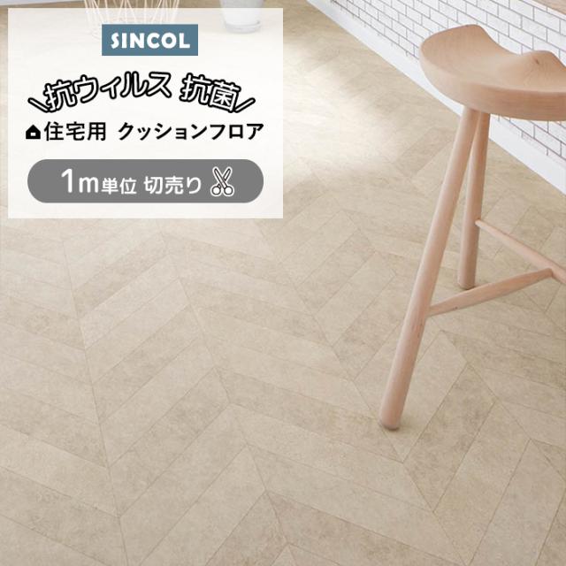 【202511_サンキュー配送対応不可のため掲載終了】シンコール クッションフロア (Sin) 切売り 約182cm幅(1mあたり) ペレヘリンボン E1059 約1.8mm厚 抗ウィルス リノベーションシート リメイクシート クッションフロアマット CF フロアシート ポンリューム