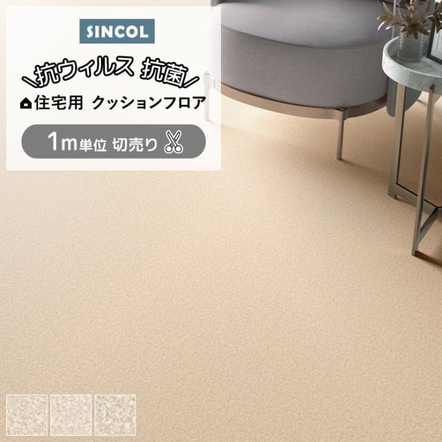 【202511_サンキュー配送対応不可のため掲載終了】シンコール クッションフロア (Sin) 切売り 約182cm幅(1mあたり) プレーンサンド E1102〜1104 約1.8mm厚 抗ウィルス リノベーションシート リメイクシート クッションフロアマット CF フロアシート ポンリューム