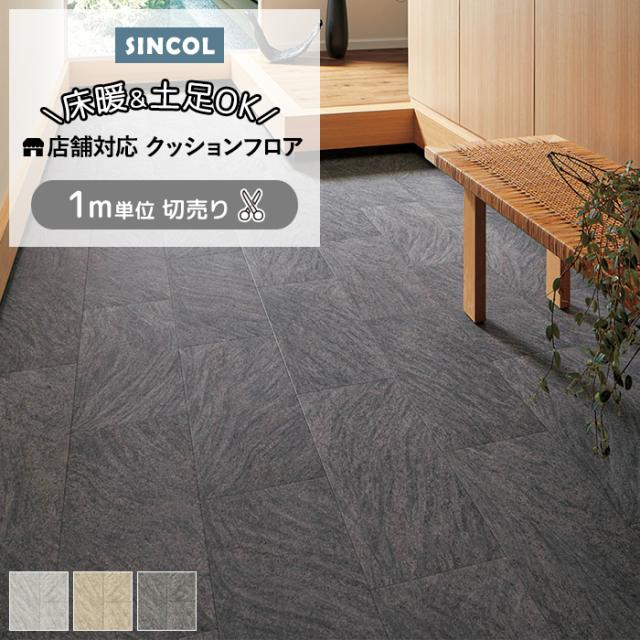 【202511_サンキュー配送対応不可のため掲載終了】シンコール クッションフロア (Sin) 切売り 土足OK 店舗におすすめ 約182cm幅(1mあたり) フロータイル S1409〜1411 約2.3mm厚 抗ウィルス 床暖房対応 リノベーションシート リメイクシート CF フロアシート ポンリューム