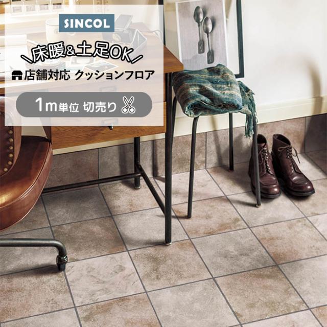【202511_サンキュー配送対応不可のため掲載終了】シンコール クッションフロア (Sin) 切売り 土足OK 店舗におすすめ 約182cm幅(1mあたり) セラミックタイル S1408 約2.3mm厚 抗ウィルス 床暖房対応 リノベーションシート リメイクシート CF フロアシート ポンリューム