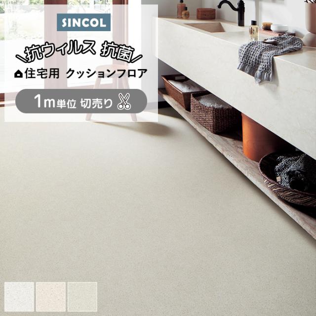 【202511_サンキュー配送対応不可のため掲載終了】シンコール クッションフロア (Sin) 切売り 約182cm幅(1mあたり) スムースサンド E1094〜1096 約1.8mm厚 抗ウィルス リノベーションシート リメイクシート クッションフロアマット CF フロアシート ポンリューム